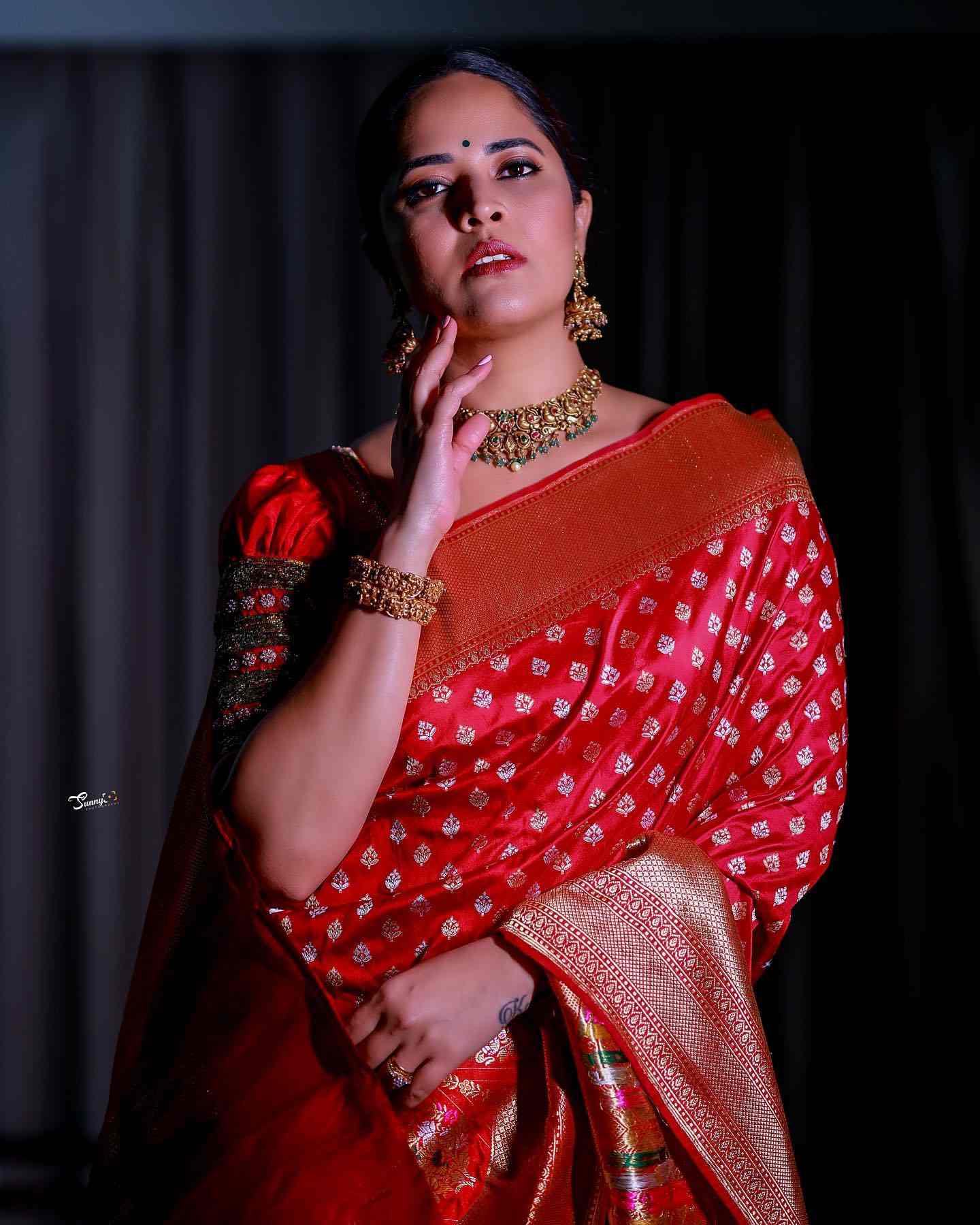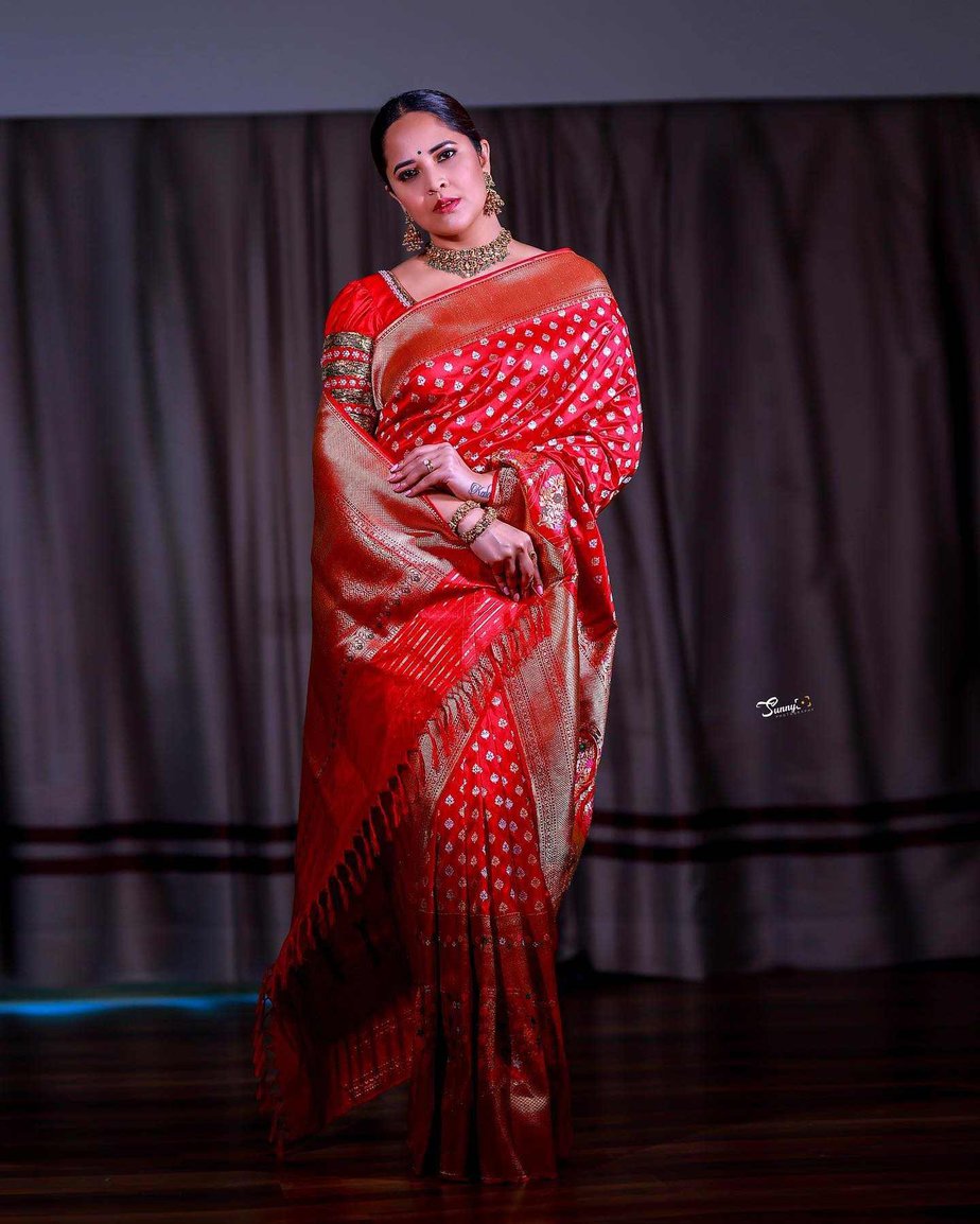 2. In a red saree by Valli Silks.anasuya bharadwaj in a red saree by valli silks