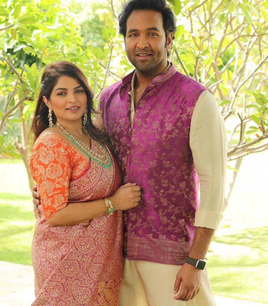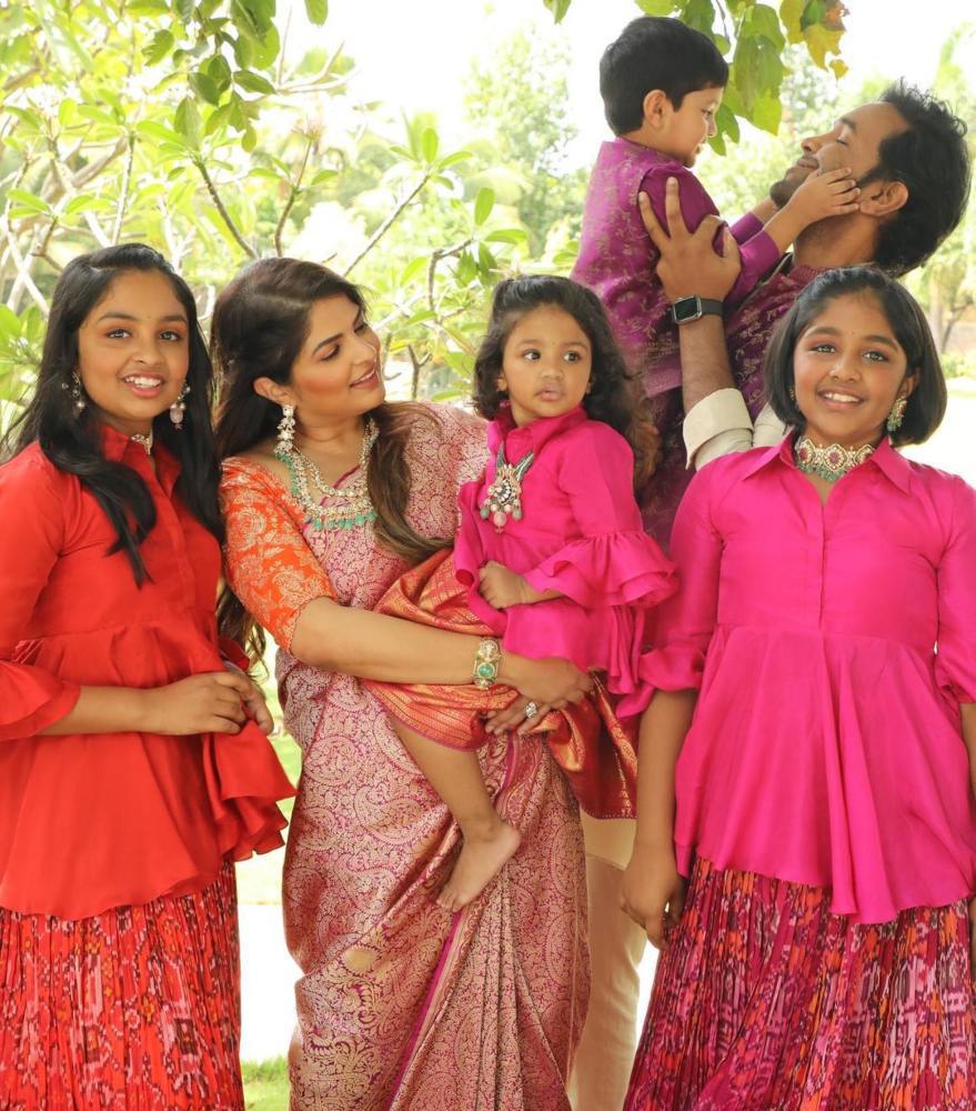Actor Vishnu Manchu and his family are known for taking the internet by storm with their gorgeous outfits when there’s a festival or occasion. For Diwali, the actor posted photos from their colourful Diwali celebration in outfits by Label Vida and jewels by Vasundhara Diamond Roof.