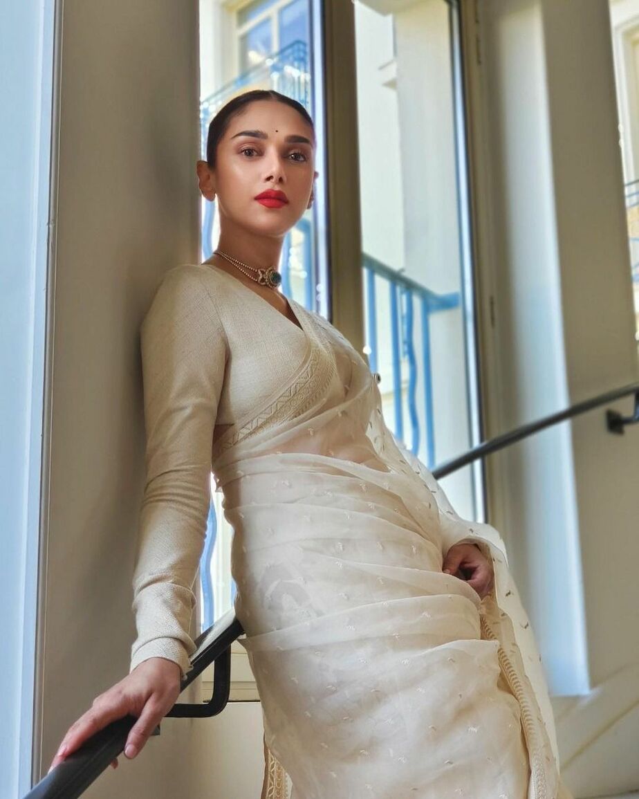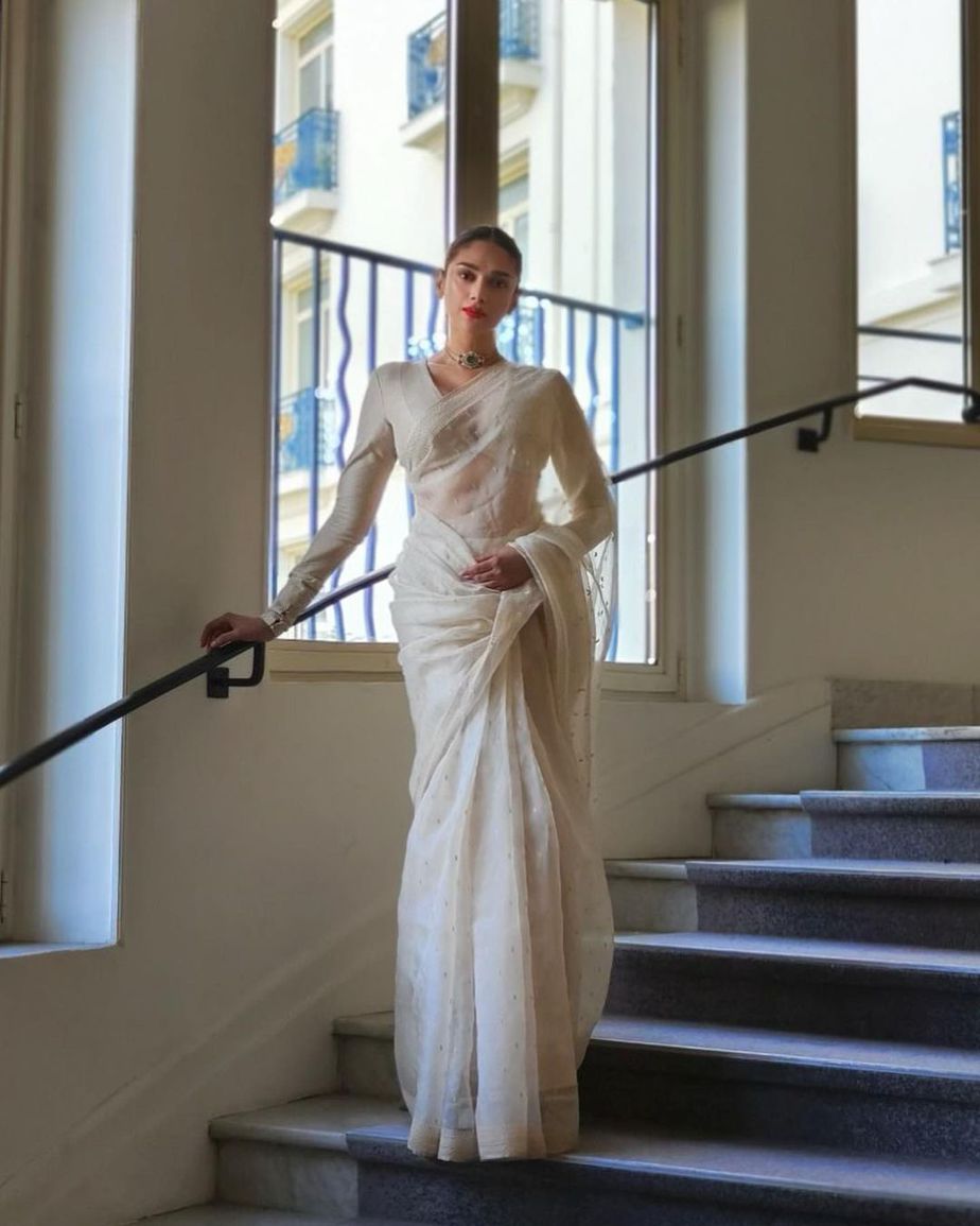 Aditi Rao Hydari’s elegant look in an ivory saree for Cannes! Celebrity Sarees