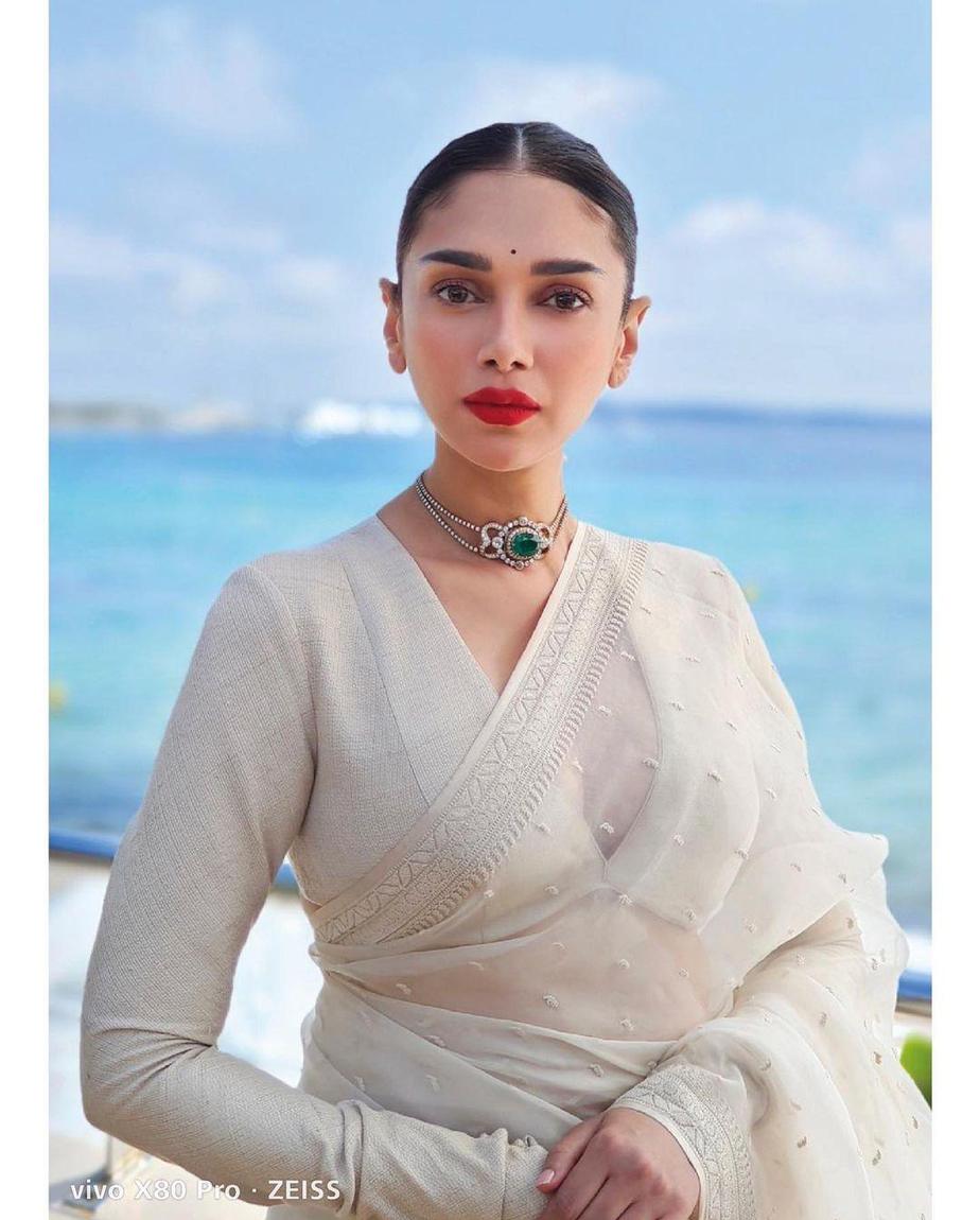 Aditi Rao Hydari’s elegant look in an ivory saree for Cannes!