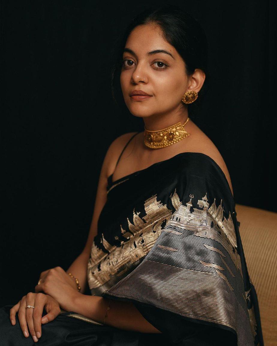Ahaana Krishna in a black saree by ange bu OKJ Signet-2
