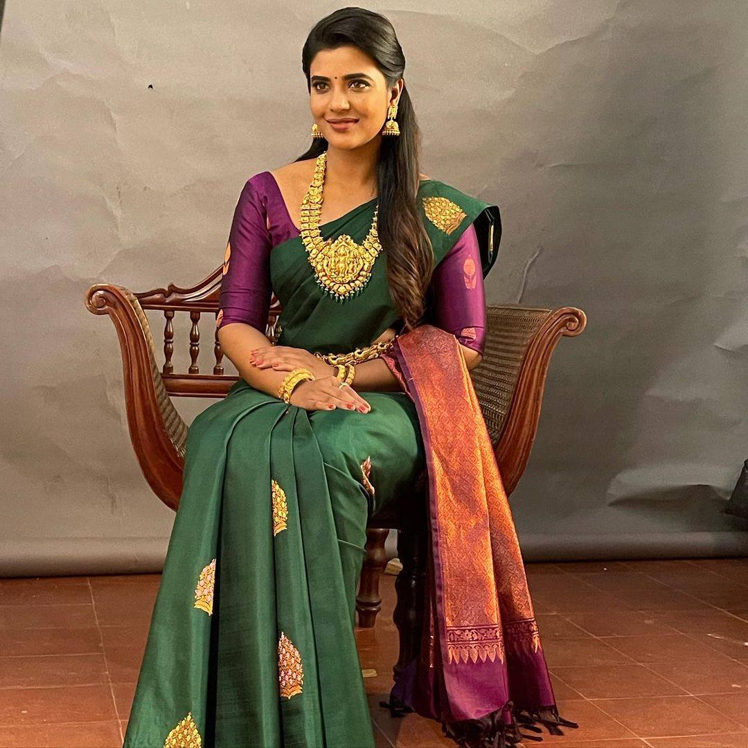 Aishwarya Rajesh is grace personfied in a green silk saree! Celebrity Sarees