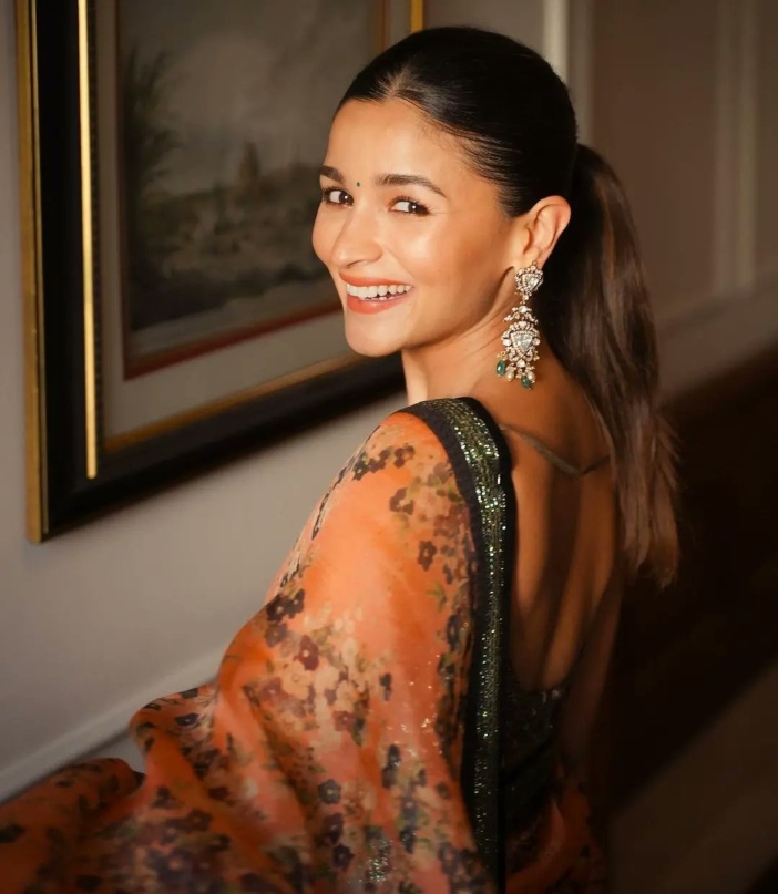 The most awaited movie of the decade is all set for a roaring release. We are definitely talking about S.S.Rajamouli’s RRR starring Ramcharan, Jr. NTR, Alia Bhatt and Ajay Devgn. The team who is been promoting the movie all over India stopped at Delhi yesterday to promote it at PVR plaza. For the event, she wore an orange floral saree by Sabyasachi and looked absolutely gorgeous.