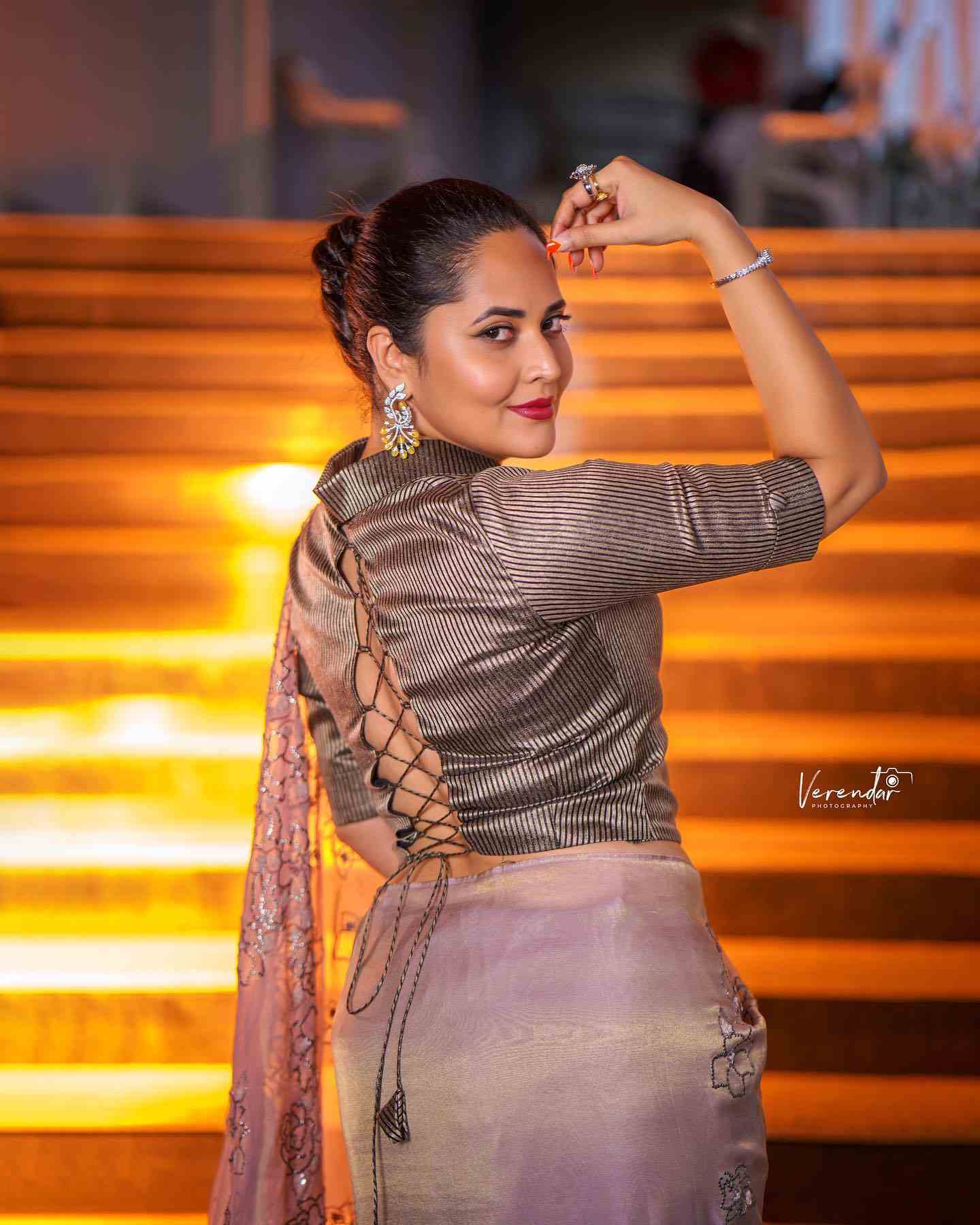 Actress Anasuya Bharadwaj is synonymous with the show “Jabardasth.” However, the actress had earlier announced that she would be leaving the show to pursue new projects and had her last episode aired last day. Showering us with pictures of her outfit, Anasuya also took the opportunity to thank the entire team of the show. She was seen wearing a pink saree by Brand Mandir from their party wear collections.