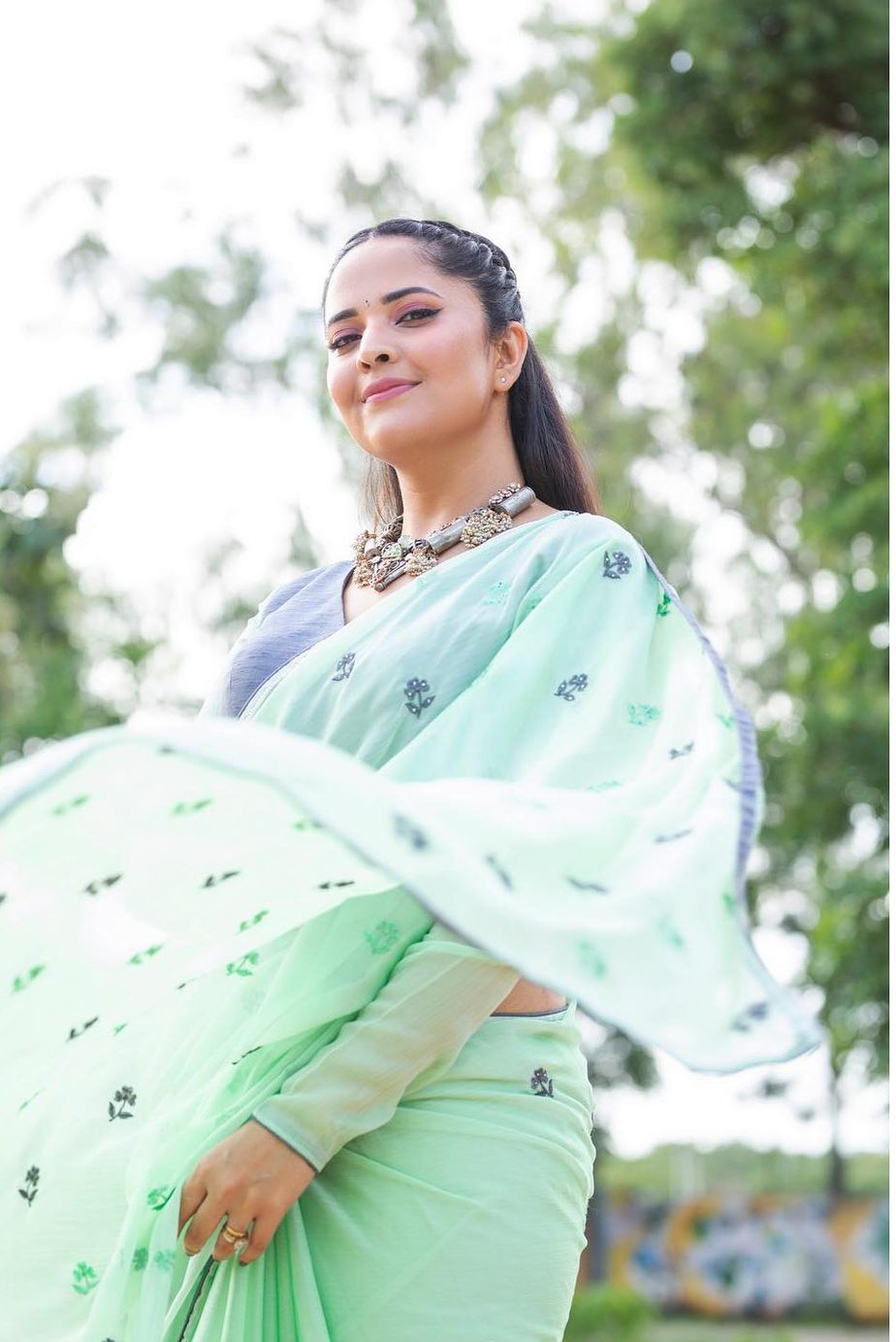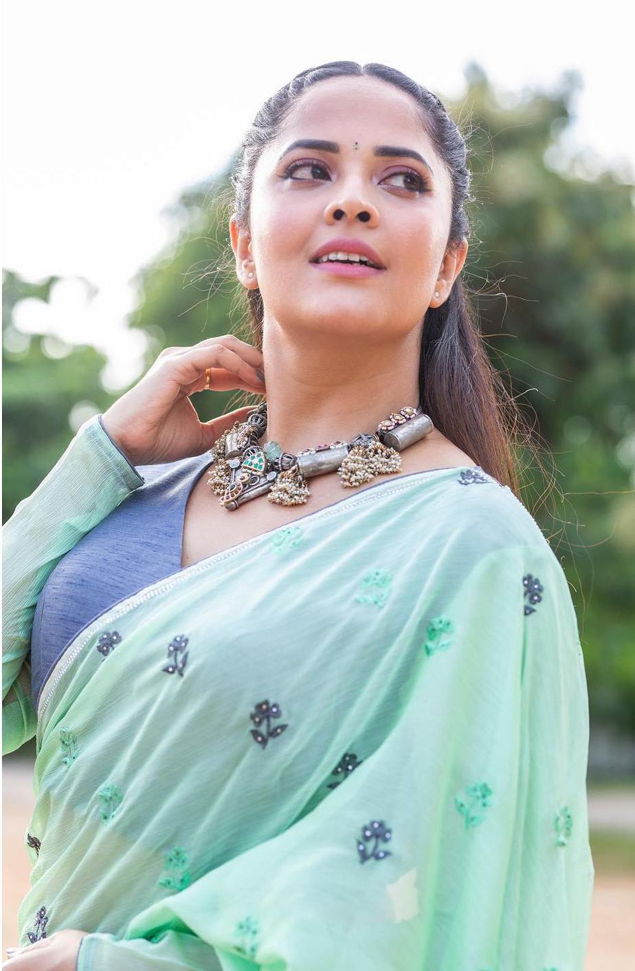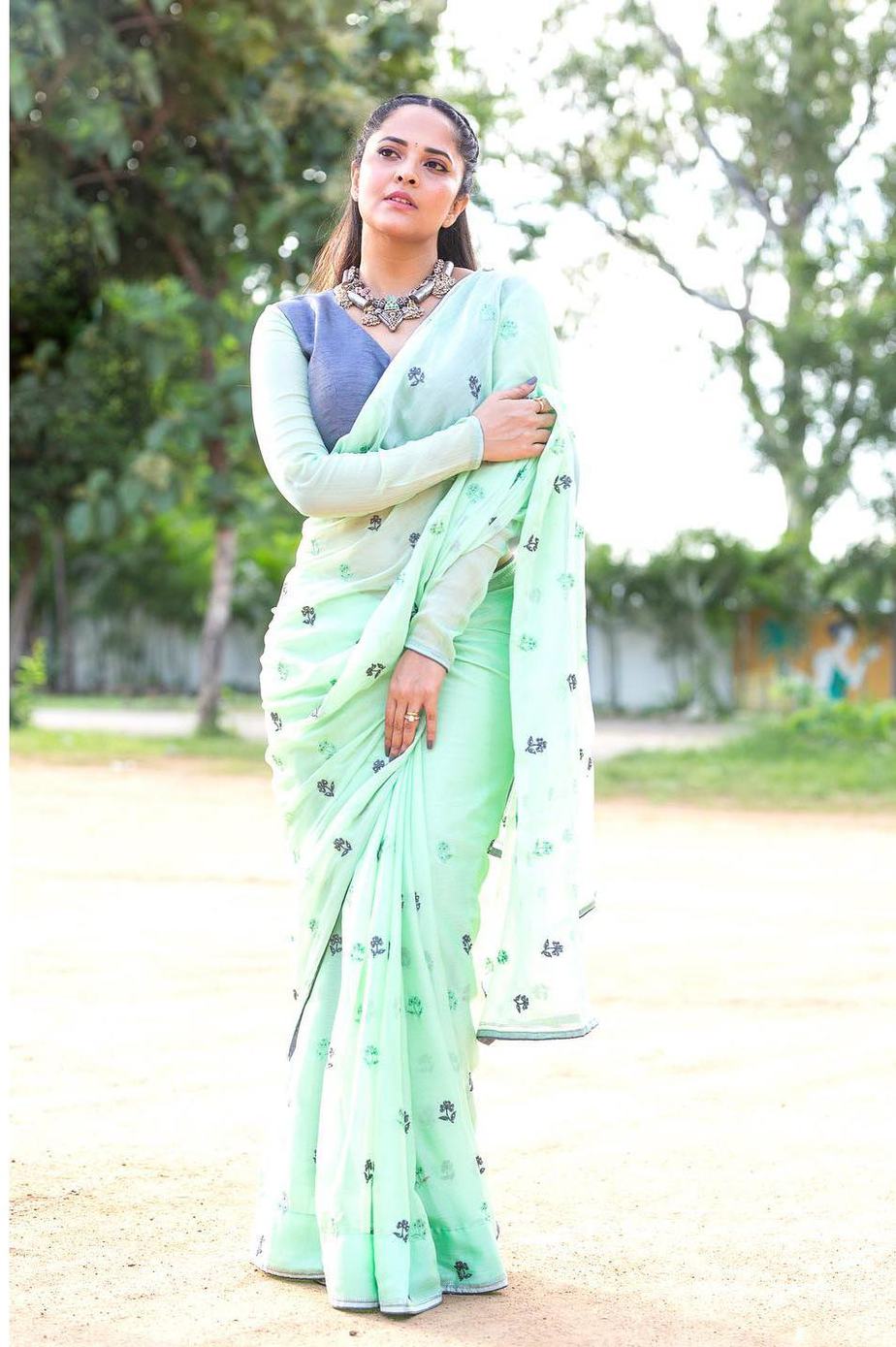 Host and actress Anasuya Bharadwaj can carry any look. Each time she is on digital camera, she makes positive she appears to be like her finest and we love how a lot she is keen about it. Following her personal swimsuit of sporting sarees to her shoe “Jabardasth,” she determined to go along with a sea-green chiffon saree by Vaasavi Label this time.