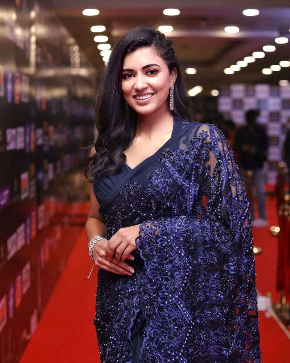 It seemed SIIMA2021 had everyone upping their style game and we couldn’t be happier. Apart from the obvious choices, our celebrities also resorted to some unconventional colours and make. Actress Anju Kurian decided to drape on a navy blue saree for the occasion. The saree is from the designer Paris de Boutique’s Pret collection. We think your search for the perfect cocktail saree ends right about here!