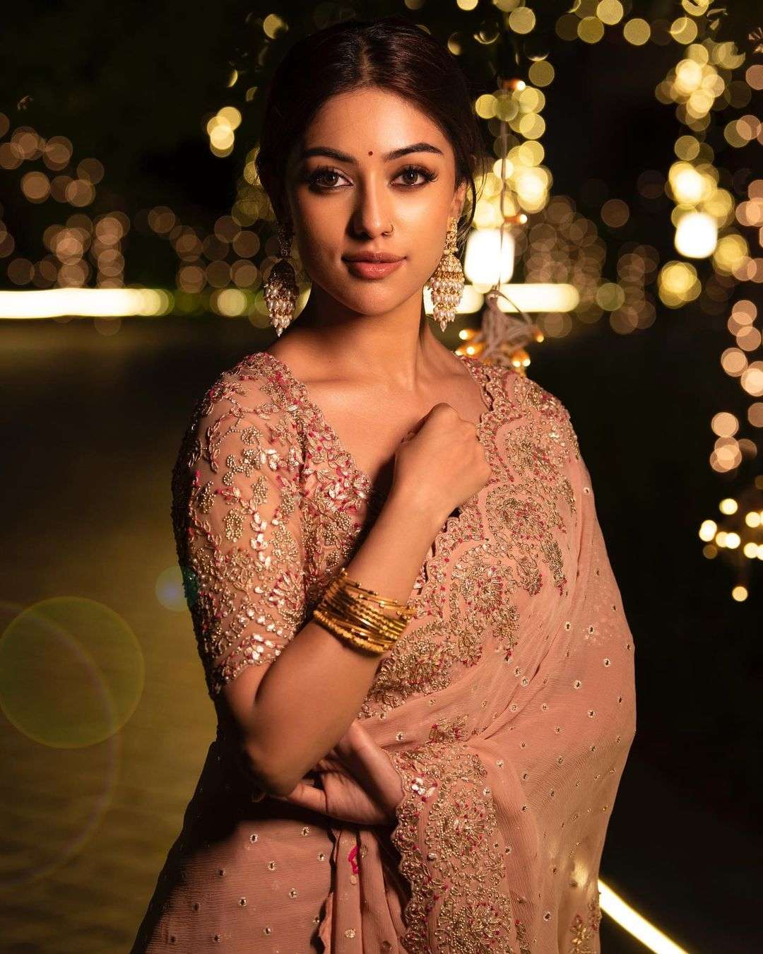 t is been a while since we saw actress Anu Emmanuel on screen. However, this doesn’t mean she does not have something in store for us. The beauty is currently a part of a number of projects including, “Ravanasura.” Meanwhile, the actress has had her recent photoshoot done wearing a pink saree by Nitika Gujral.