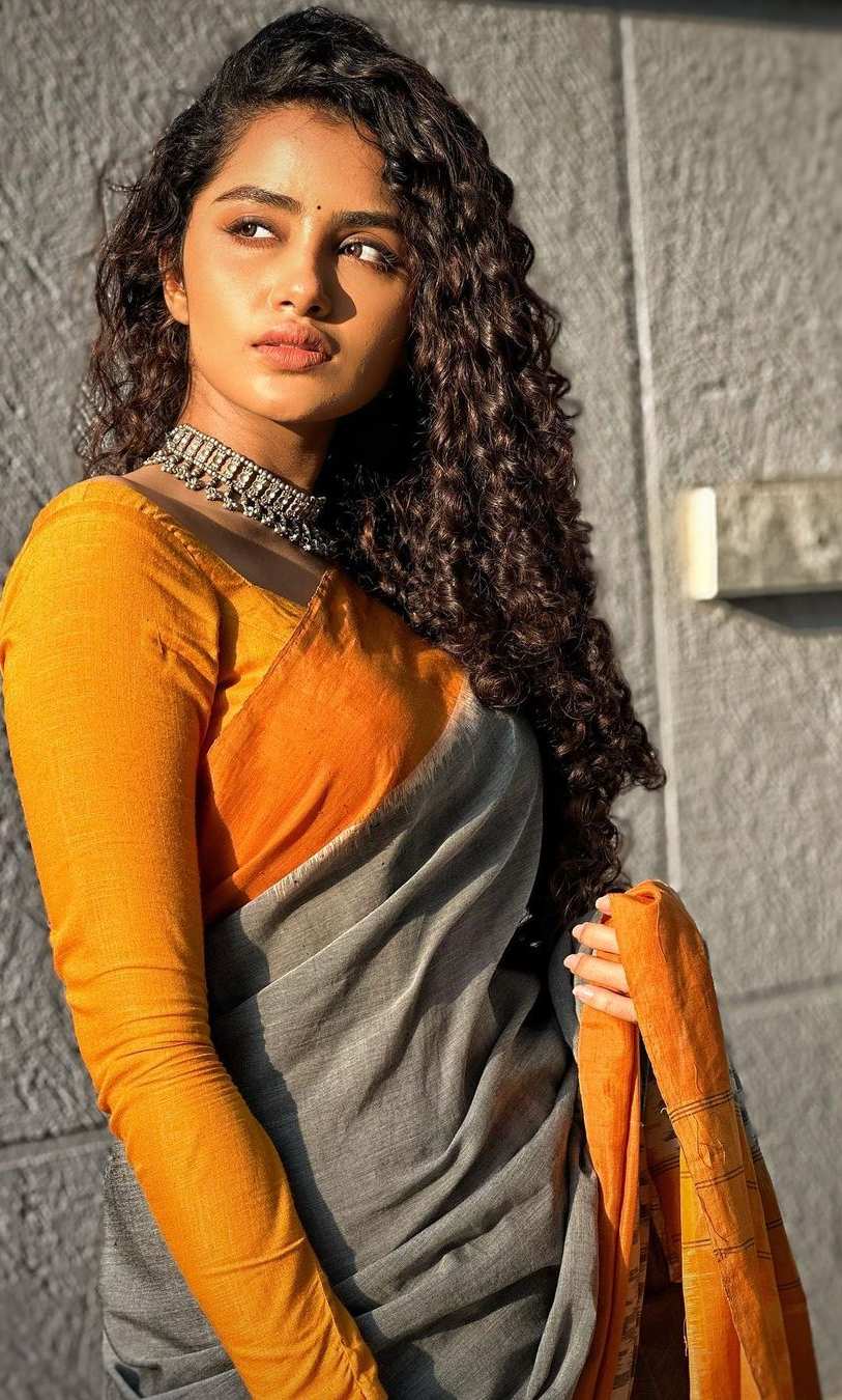 Actress Anupama Parameswaran is ready to rule the box offices yet again with a romantic story,’18 Pages.” She plays the character of Nandini who is technologically challenged and how she finds her love becomes the premise. For a meet and greet at a mall today. Anupama showed up in a grey Pochampally Saree by Omana Clothing.