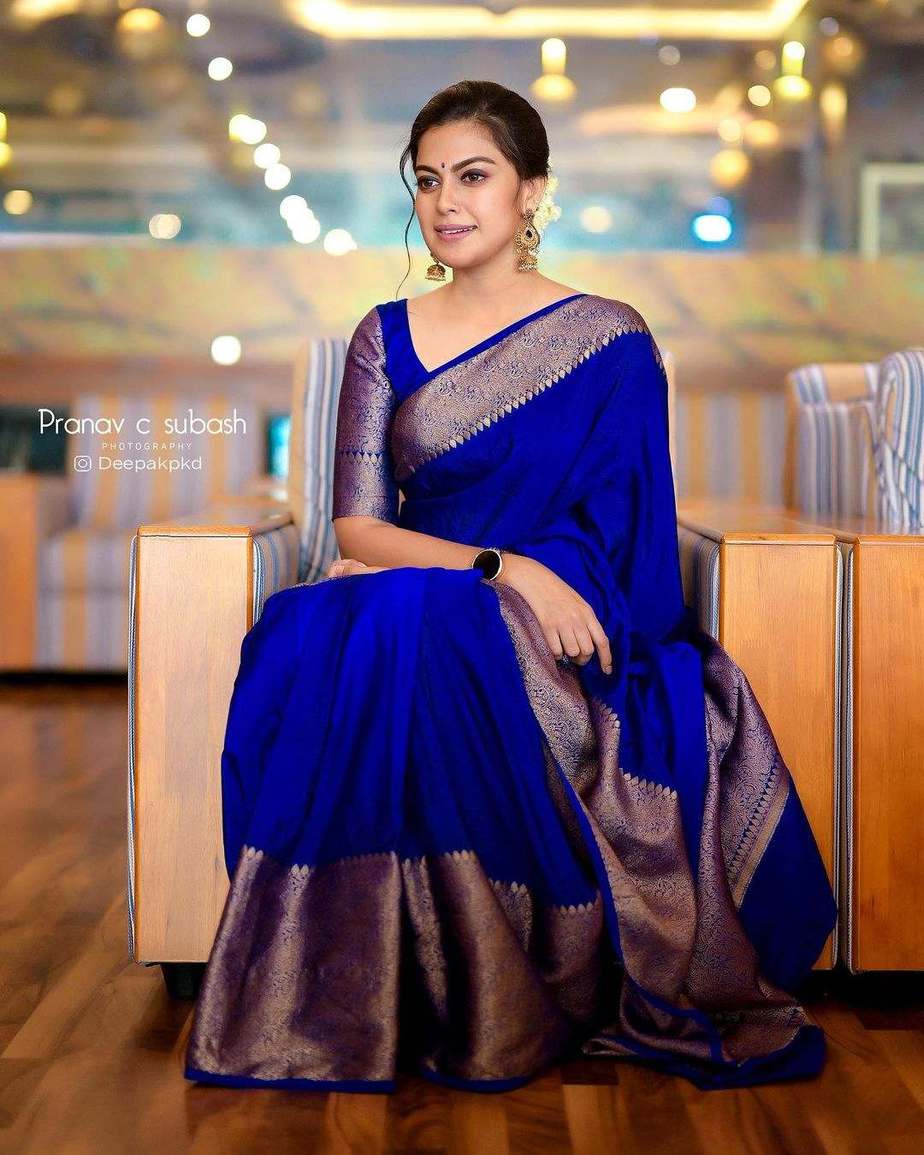 It’s been a while since actress Anusree Nair has treated us with some pictures but we think the wait’s worth it. The South Beauty took it to Instagram and posted a few photos of her from a wedding she had to attend and we think she looks mesmerising. Anusree wore a royal blue pattu saree by The D’S Studio.