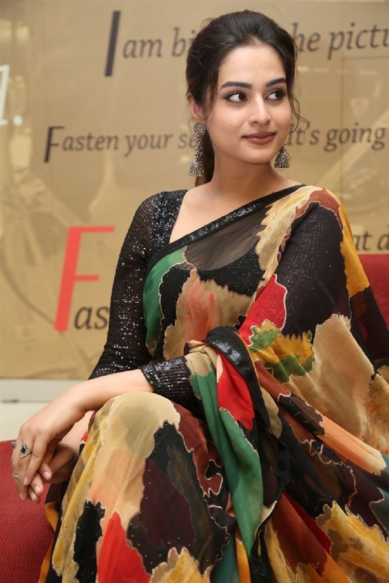 “Mukhachitram” which had its trailer released last day has already clocked a million views on Youtube. Starring Vishwak Sen, the movie has a long list of the ensemble cast and tells the story of a couple that undergoes plastic surgery. Actress Ayesha Khan who is also a part of the movie was spotted at the trailer launch last day in a chiffon saree by Cinderella’s Closet.