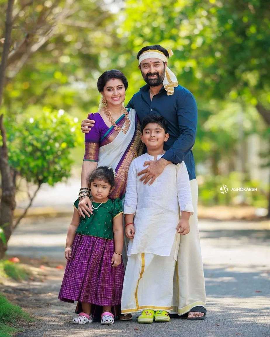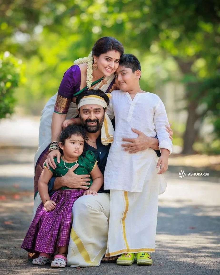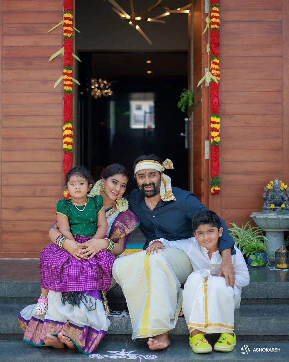 Actress Sneha Prasanna is a fashionista in herself and has proved that her family is no less. On the occasion of Tamil New Year, the family of four came together and here we have some cute family pictures to drool over. The family dressed up in traditional and had blue as their theme colour.