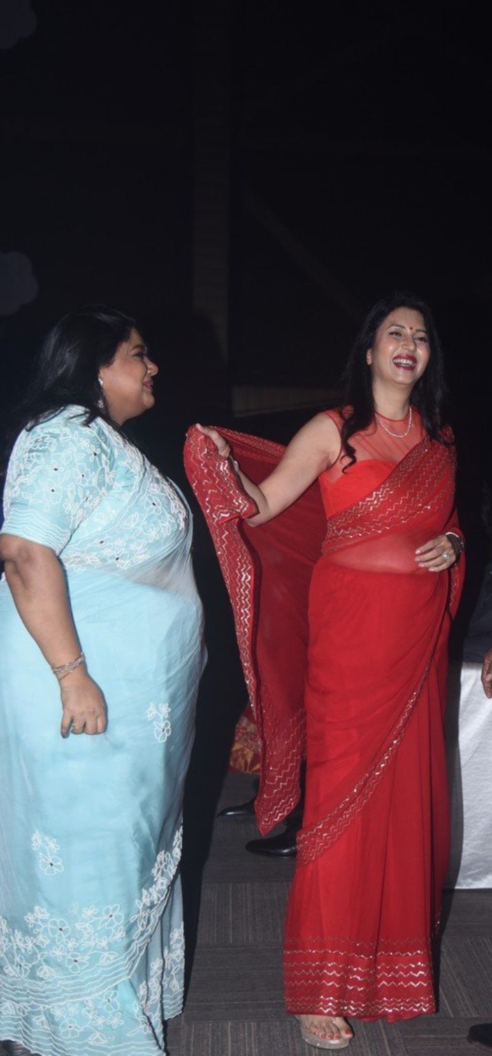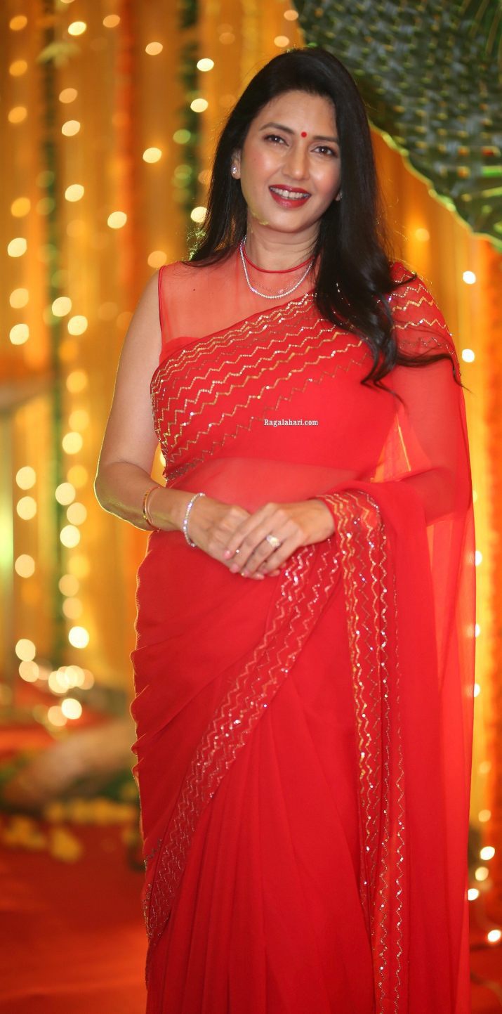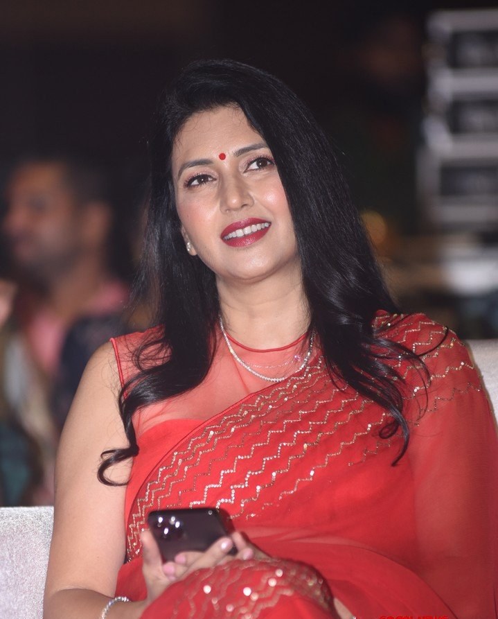 “Pelli SandaD”, the much-awaited sequel to the 1996 film is expected to hit the theatres this month. Its pre-release event was organized in Hyderabad last day which saw a lot of glitz and glamour. Megastar Chiranjeevi and Victory Venkatesh presided over the function. Meanwhile, Deepti Bhatnagar, the actress in “Pelli SandaD” also decided to attend the event in a red saree.