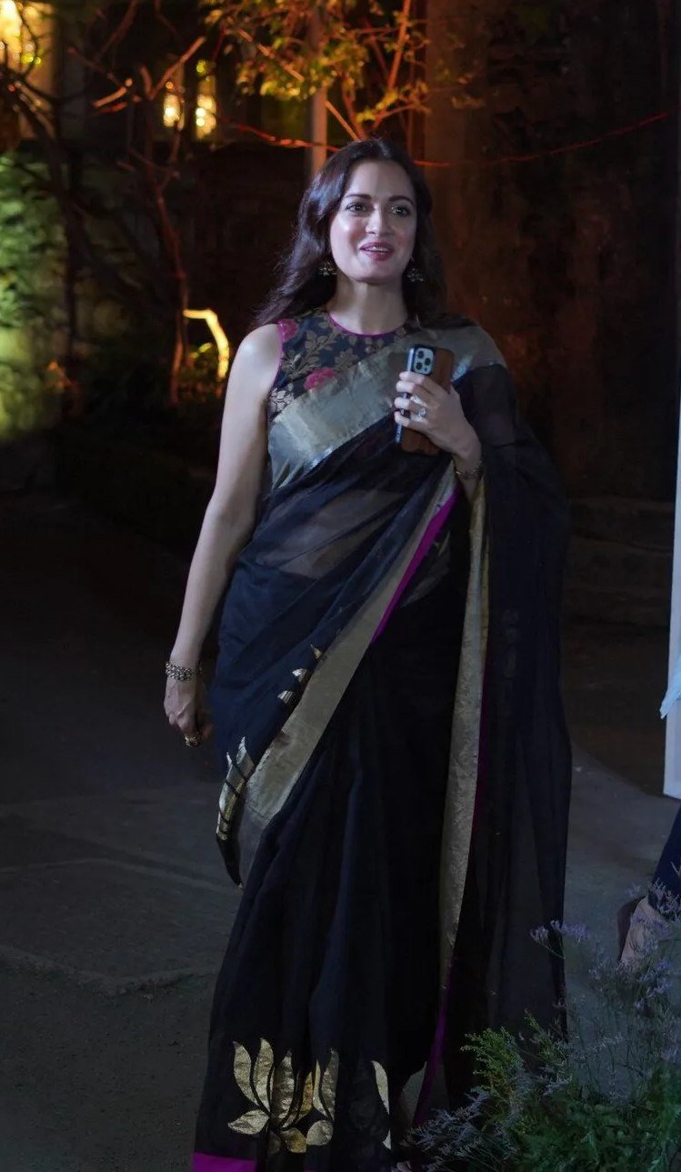 Actress Richa Chadha and actor Ali Fazal’s wedding was one of the most eventful things that happened in Bollywood this week. The couple had been dating for over a decade now and decided to throw a party for their close friends to celebrate their union. For the event actress, Dia Mirza appeared in a black Chanderi saree and we are loving it.