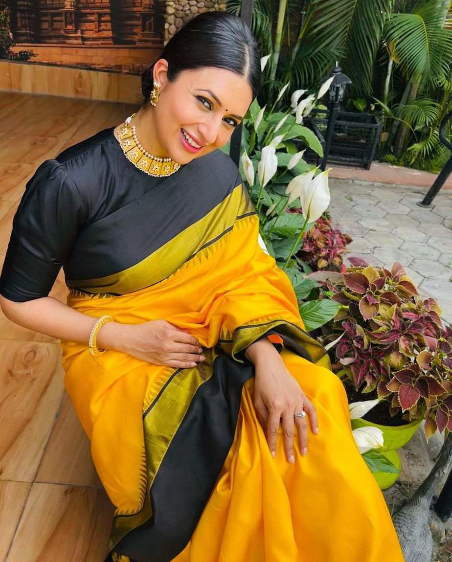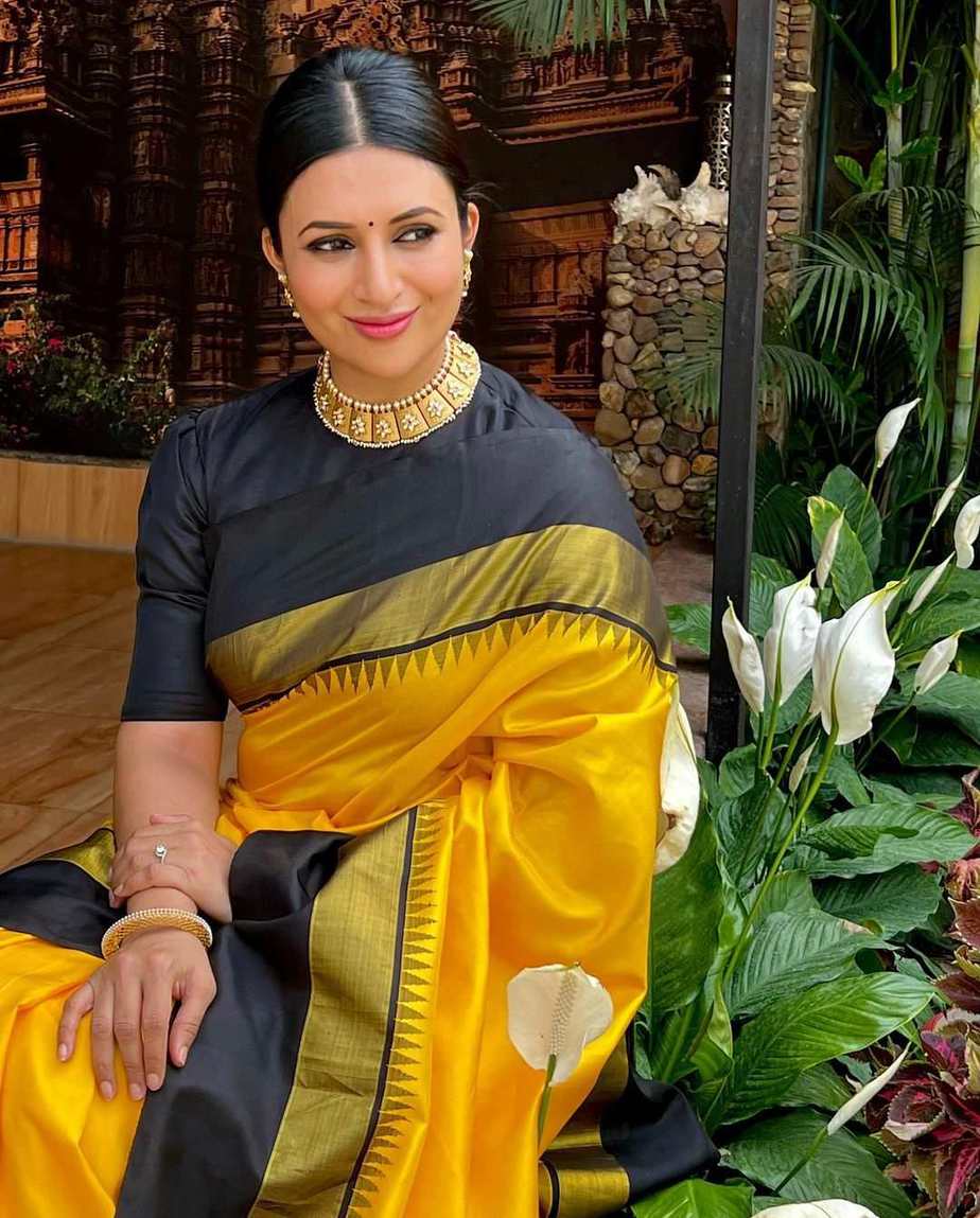 Actress Divyanka Tripathi had humble beginnings with a small role in a TV show. However, due to her hard work and talent, she rose to the position of small screen’s most bankable actress. The beauty who always surprises us with her acting prowess was awarded the Champions of Change award this year. For the function, she wore a yellow Kanchipuram saree by Kankatala.