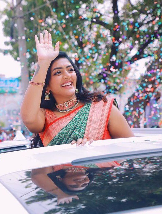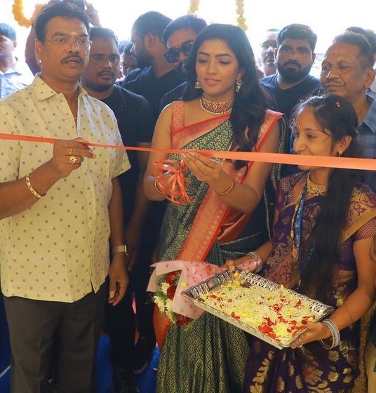 We all love it when our favourite celebrities attend functions and events. When they attend inaugural functions, we see them dressed up in the best. As most of them choose silk sarees, we also get some fashion choices for a wedding we might want to attend. Recently, actress Eesha Rebba attended the opening of Kasam Fashion Mall in a green silk saree and looked beautiful.
