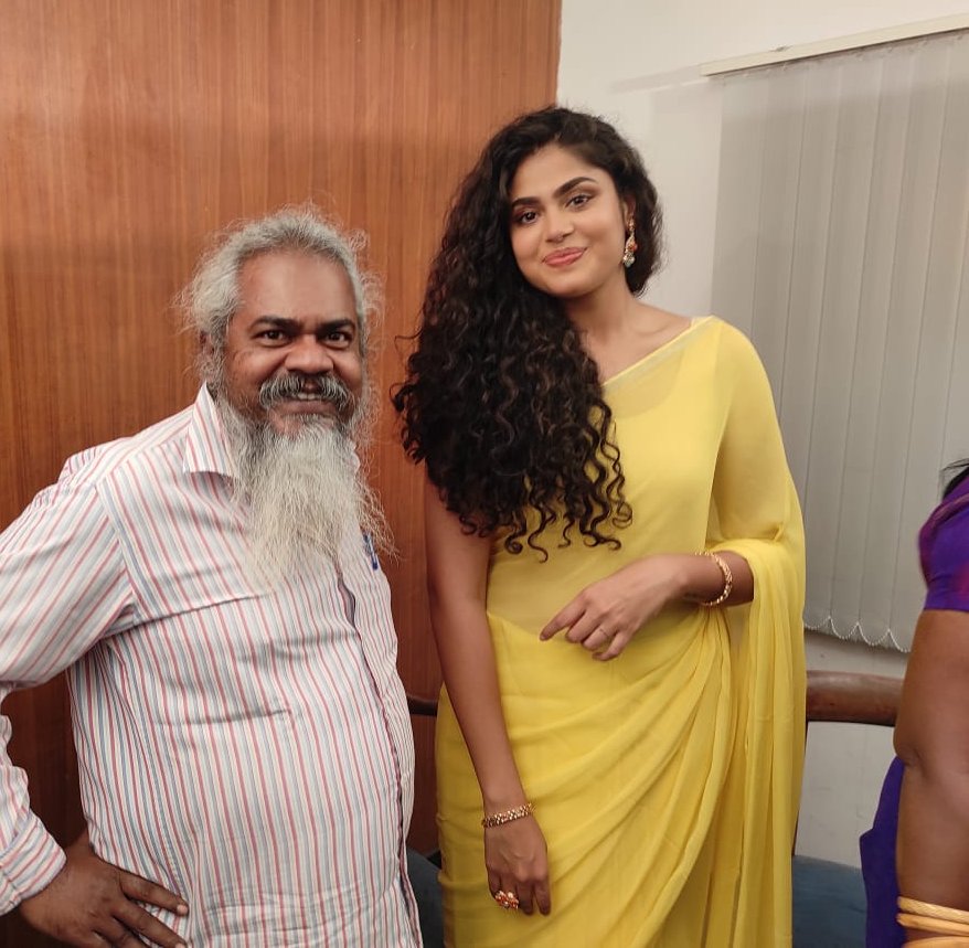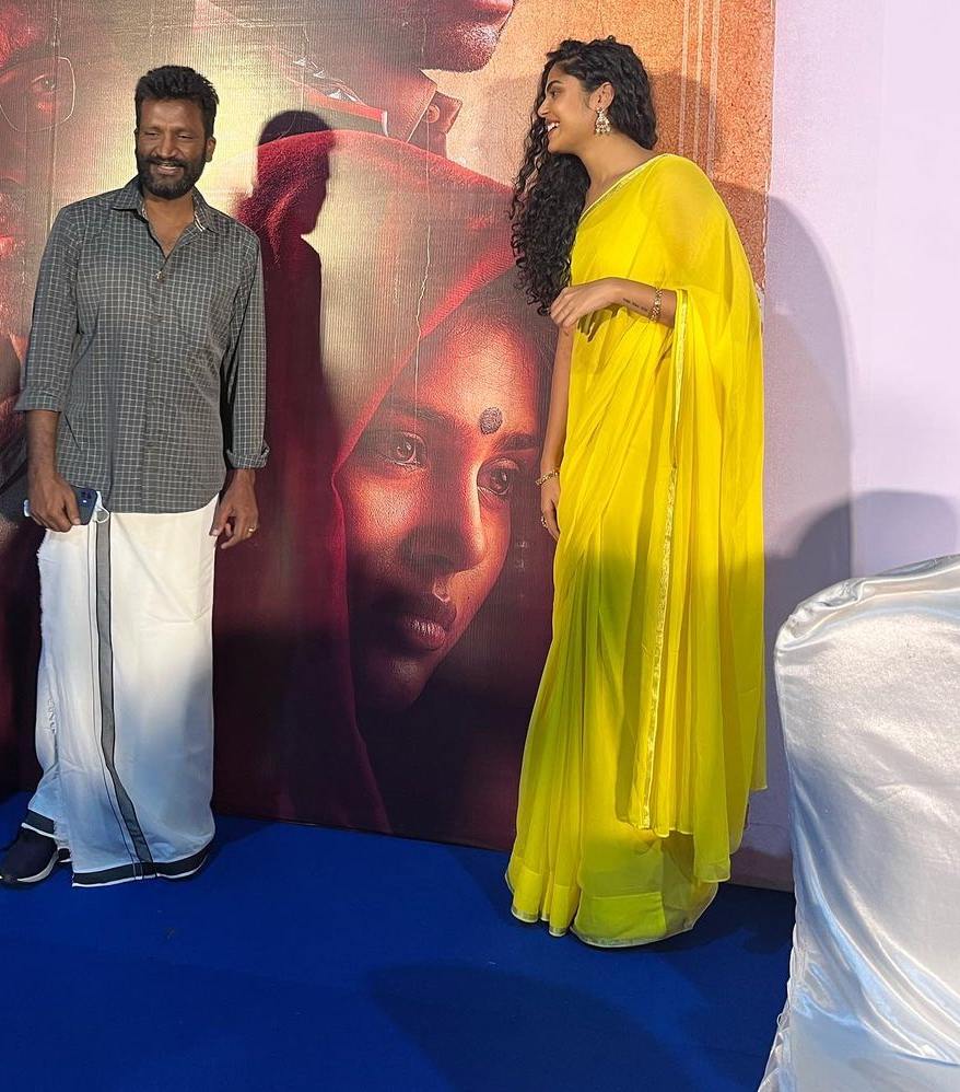 After spreading her magic in Tollywood, actress Faria Abdullah is all set to debut in Kollywood. The actress will be seen alongside Vijay Antony in “Vallimayil” which is a drama helmed by M. A. Kaja. The movie had its first look poster revealed last day in presence of the cast and crew. Faria attended the auspicious occasion in a yellow saree.