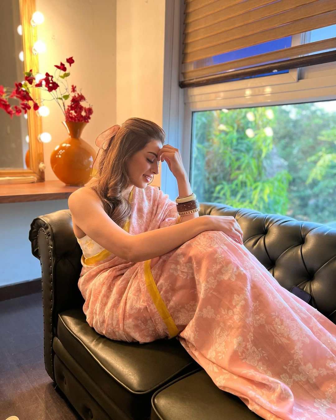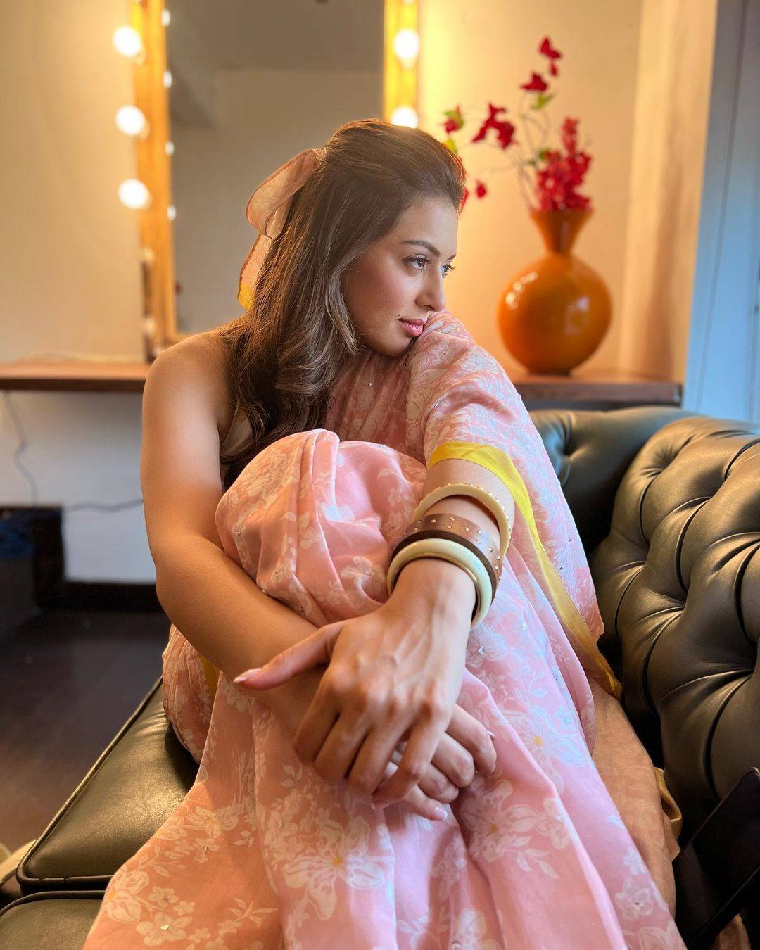 Actress Hansika Motwani is a delight to watch whatever she wears. The beauty has some elegant features that are highlighted better when she drapes on a saree. In her latest pictures on Instagram, she is seen wearing a pink saree and looks prettier than ever.