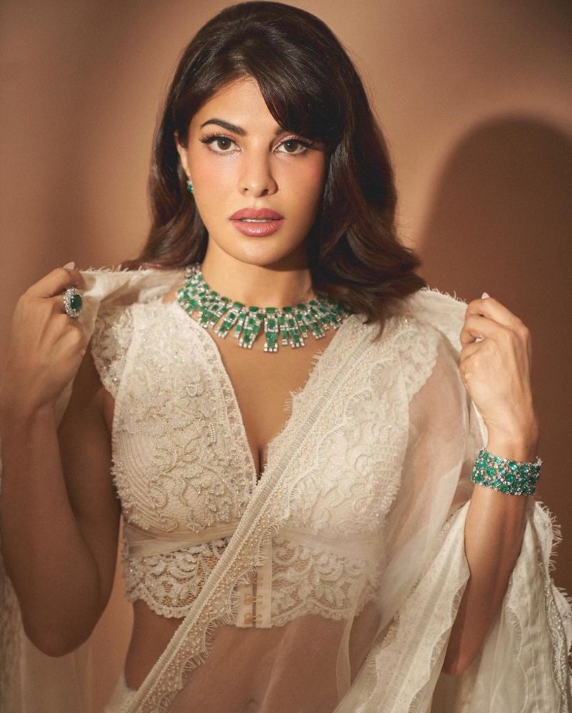 Our Sri Lankan beauty, Jacqueline Fernandez has beauty beyond words. When a beauty like her adorns herself in white, it feels as if a petite goddess has stepped forward. If you wish to catch a glimpse of this diva in her off-white saree look, then check down below for deets.