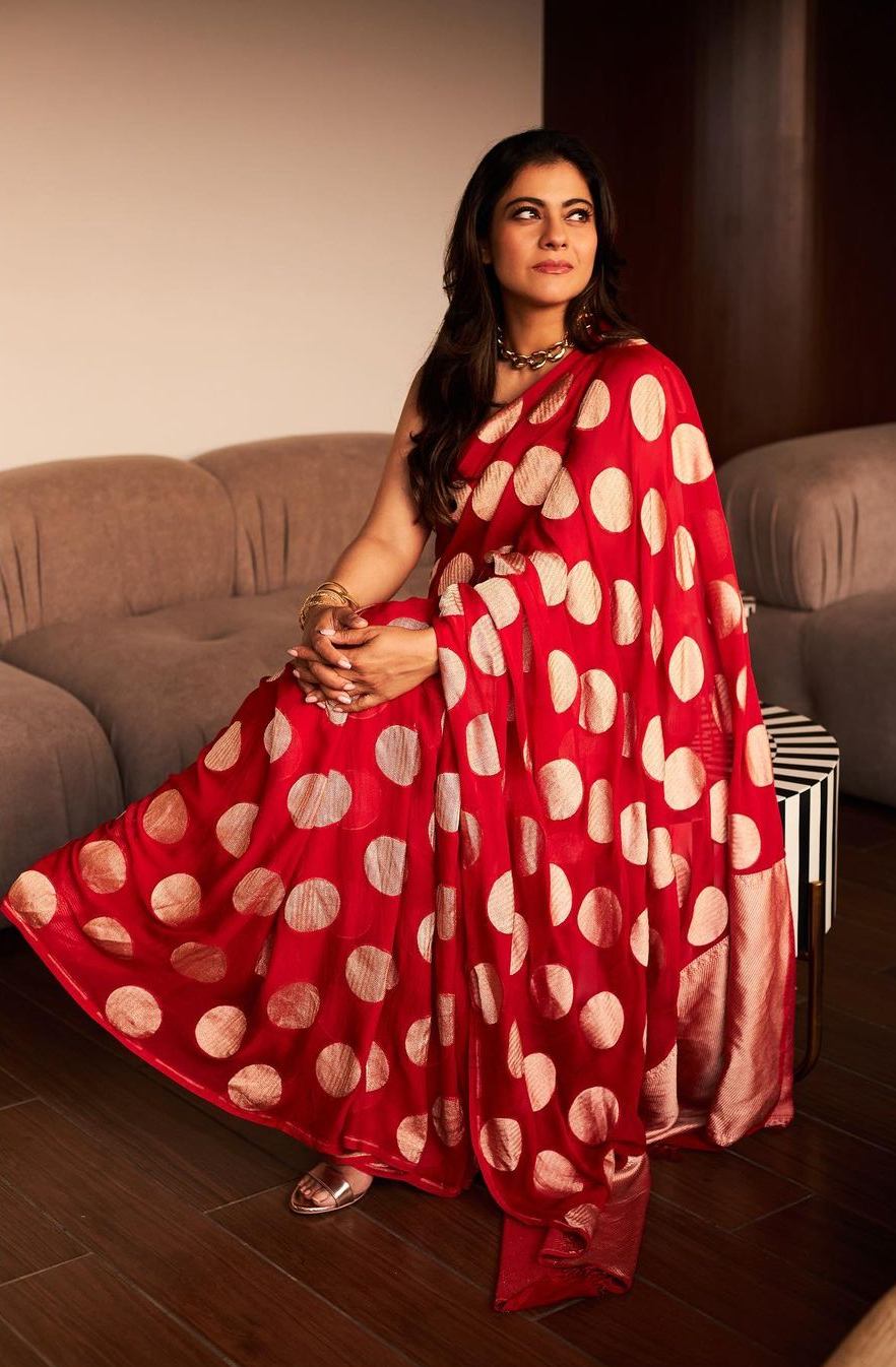 Actress Kajol and director Revathy Asha have managed to impress the audiences thoroughly with their latest venture, “Salaam Venky.” Also starring Vishal Jethwa, the movie is an emotional drama and is loved by critics. For the last leg of promotions, Kajol opted for a blood-red saree by Ekaya.