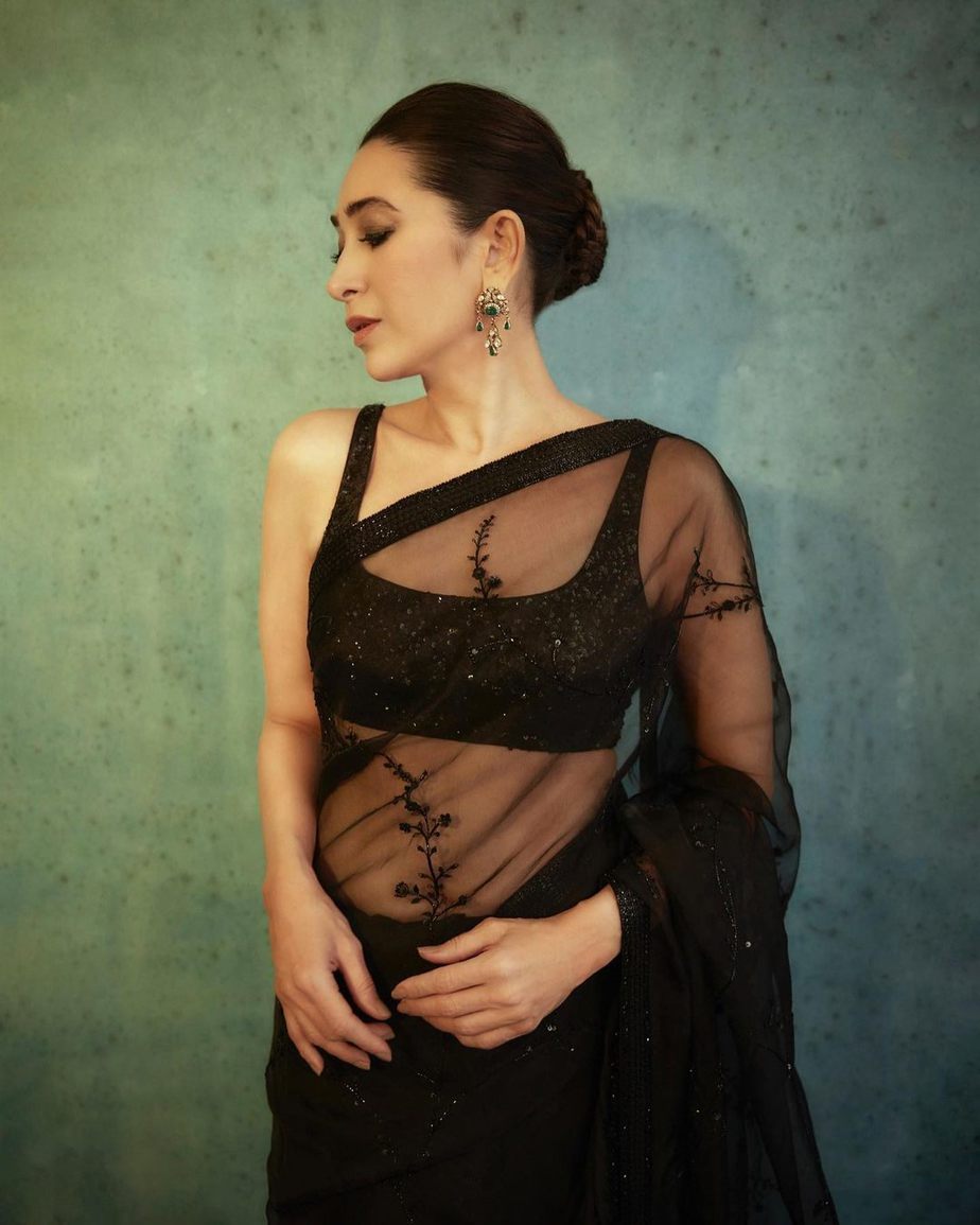 Karisma Kapoor looks elegant in a black sheer saree at Mirchi awards’22! Celebrity Sarees
