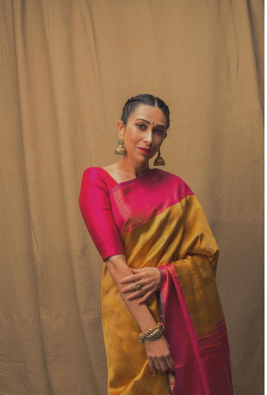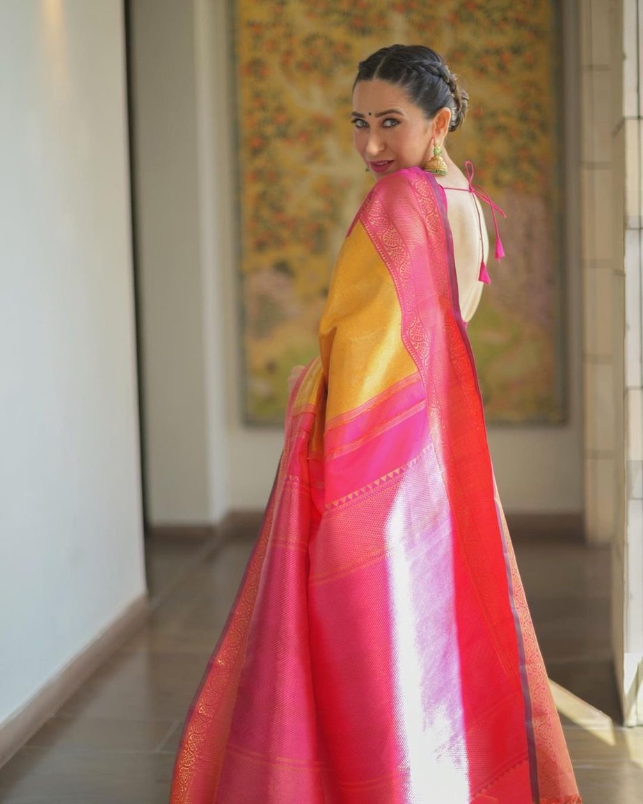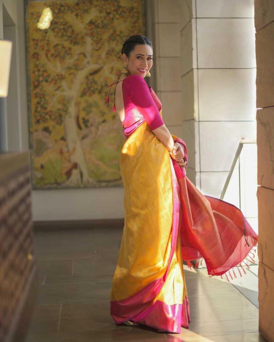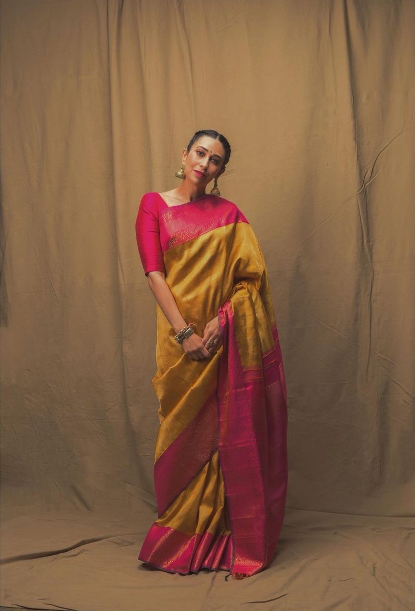 The brand Kankatala has emerged to be one of the most trusted silk saree showrooms in South India. Due to its legacy and specially curated designs, the brand finds a place in every girl’s bridal trousseau. Spreading its wings further, the brand decided to open a branch of its in Delhi. The showroom was inaugurated by Karisma Kapoor who draped on a mustard yellow Kanchipuram from their saree collection for the event.