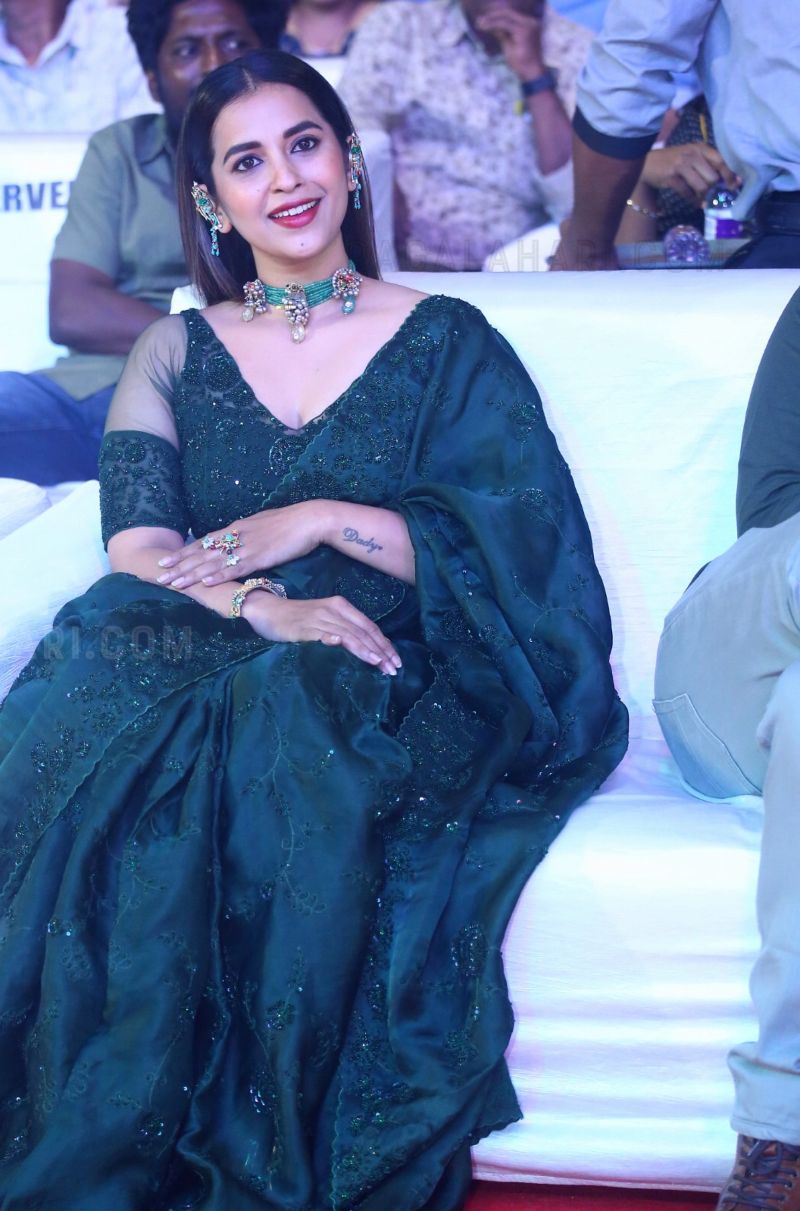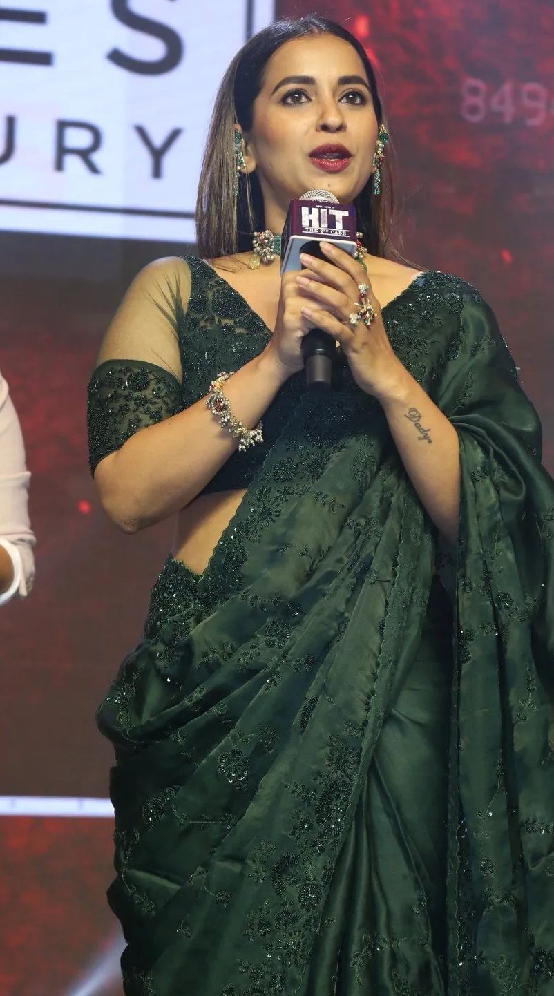 “Hit-2” is one of the most anticipated thriller movies to be released this year. With hardly a week left before its release, the movie has created a lot of buzz around and is expected to make some new records at the box office. Apart from Adivi Shesh and Meenakshi Chaudhary, the movie also stars Komalee Prasad in a prominent role. She attended the pre-release event of the movie held last day in a green organza saree.