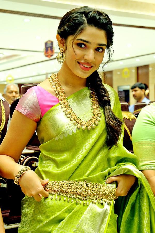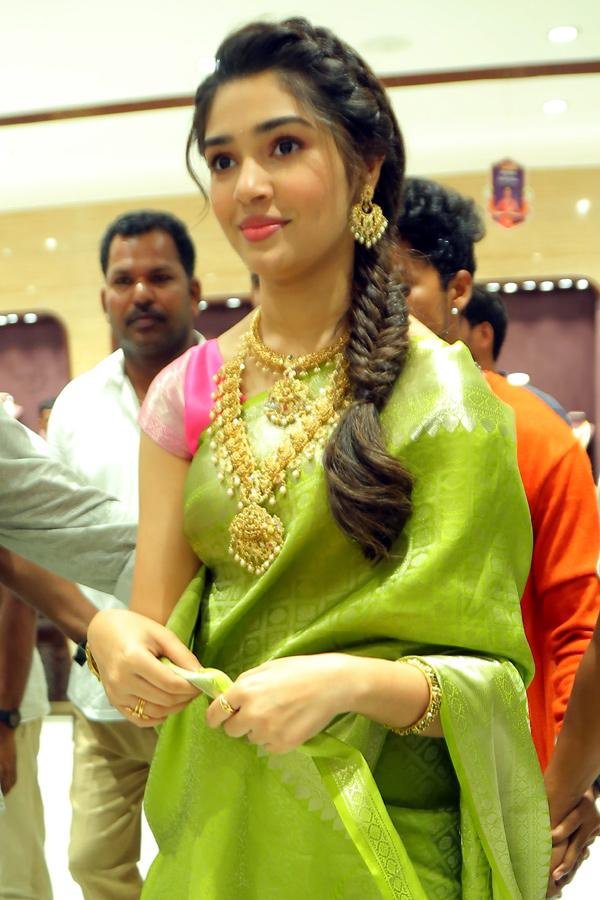 Actress Krithi Shetty was spotted at the Chennai shopping mall opening last day. The actress was crowded with a number of fans who wanted to catch a glimpse of her. Krithi decided to attend the event in a tree-green silk saree.