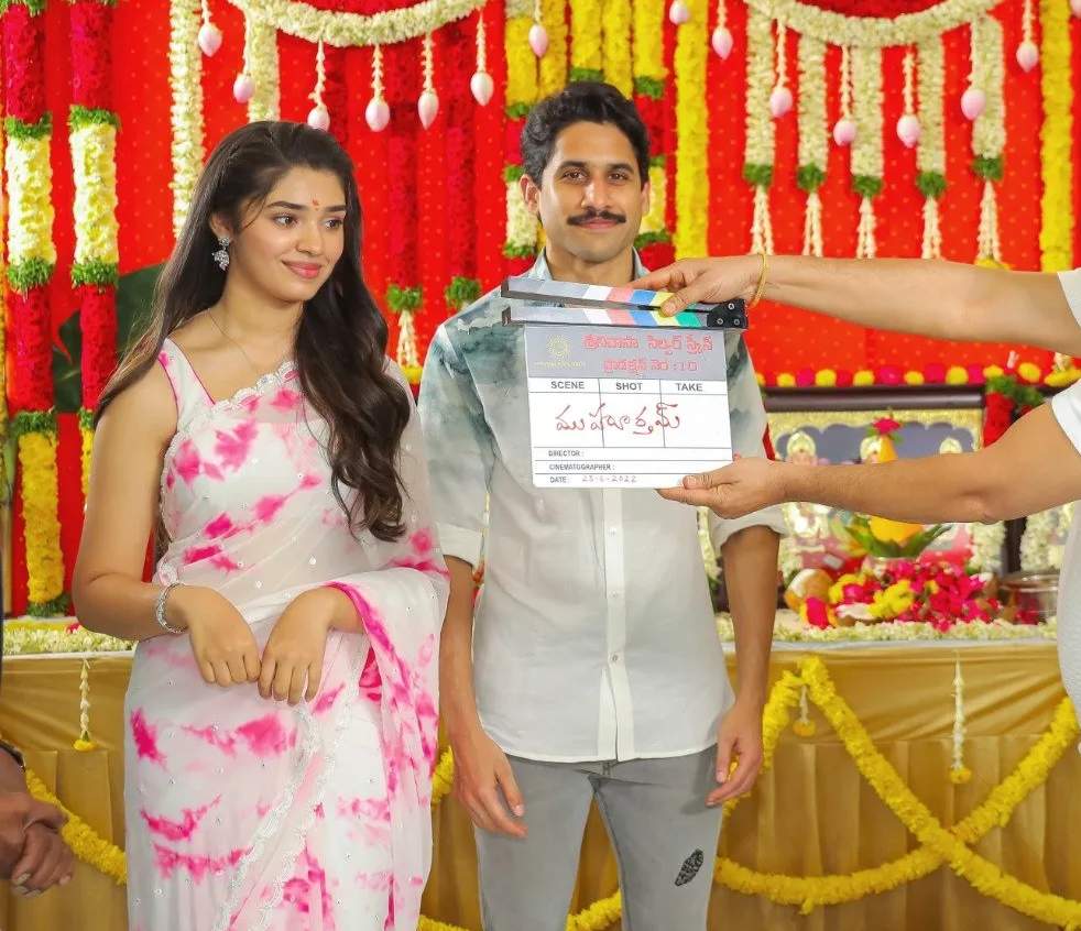 The hit pair of “Bangarraju”, Krithi Shetty and Naga Chaitanya are ready for their next. This one is directed by Venkat Prabhu and is for the time being titled “NC-22.” So, the crew launched the movie last day in the presence of Rana Daggubati and for the occasion, Krithi resorted to an ivory saree and we can’t take our eyes off her.