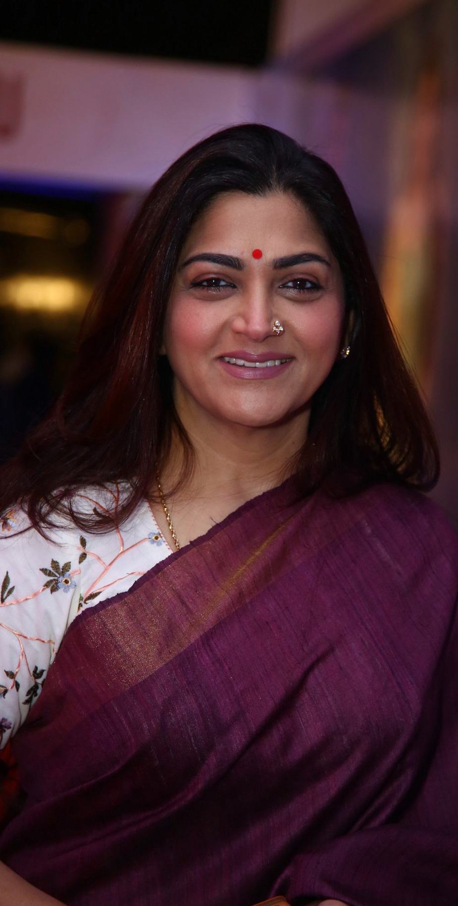 Sharwanand’s “Aadavallu Meeku Joharlu” has a long list of talented actresses. One of them is actress Kushboo who plays mother to actress Rashmika Mandanna’s character. So when the organizers arranged a pre-release event, Kushboo made sure she attended it. She presented herself in a purple saree and looked graceful.