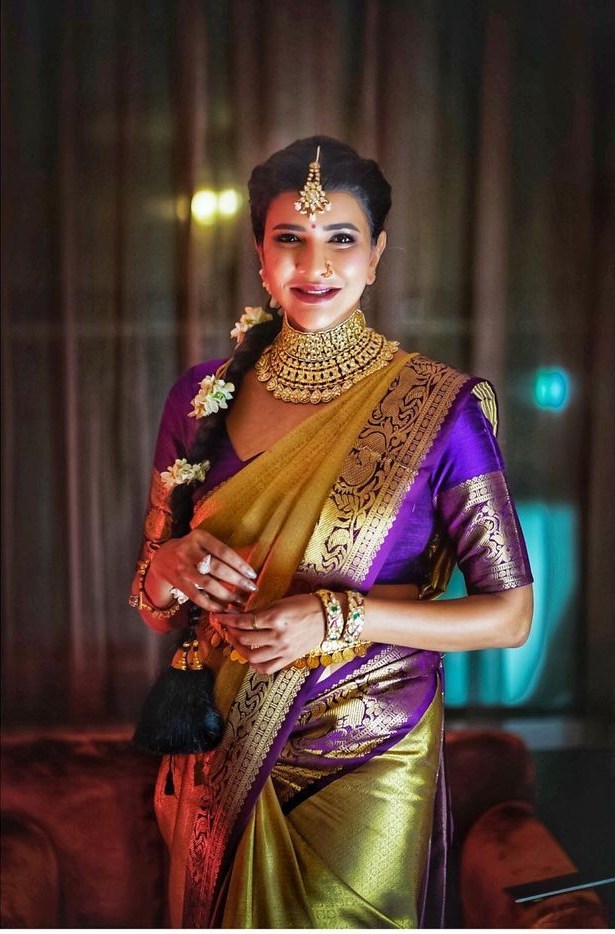 For the wedding of her good friend actress, Lakshmi Manchu determined to decorate up full Telugu model and we’re loving each little bit of it. The beauty wore a lime inexperienced pattu saree borrowed from her mother in hues of lime inexperienced and aubergine. We’re positive even in the event you don’t love pattu sarees, you’ll begin loving them after you see the images under.