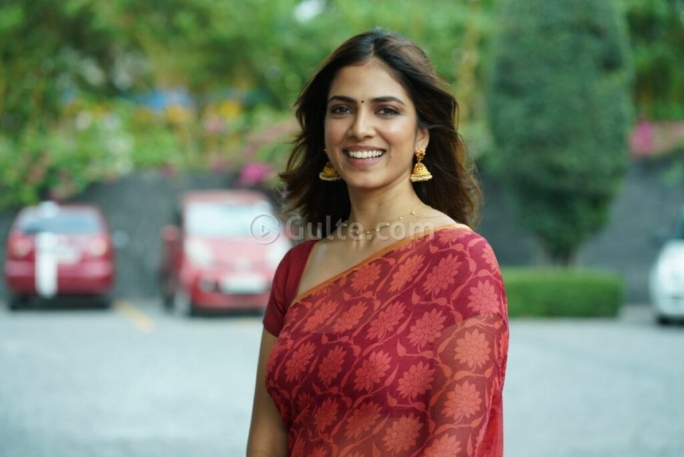 Malavika Mohanan keeps its simple in a red floral saree for “Maaran” promotions!