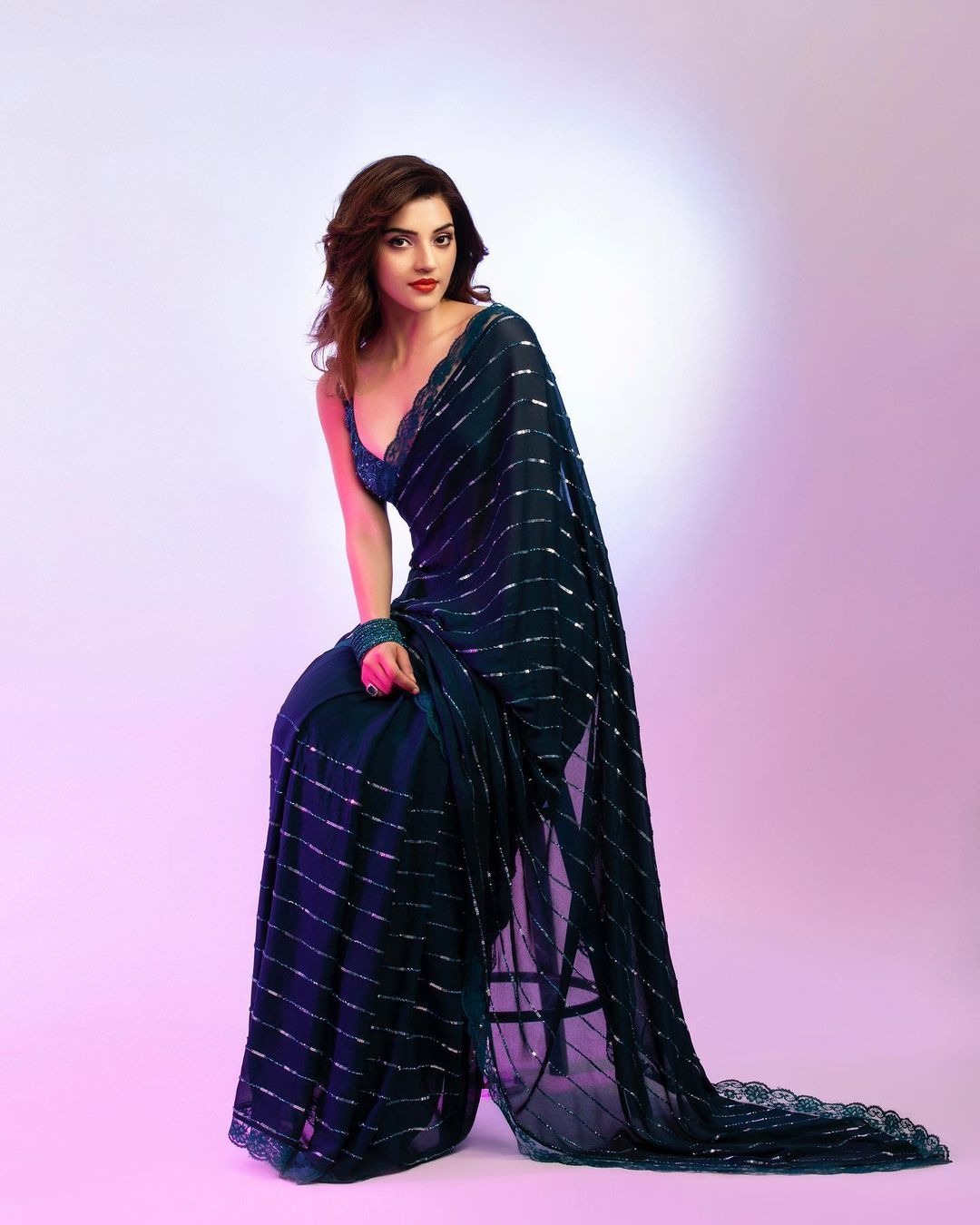 Geethika Kanumili is one of the most popular celebrity designers. Her outfits are preferred by our favourite celebrities at events and other celebrations. And rightly so, because of the uniqueness perhaps each of these artworks carries. Actress Mehreen Pirzada is the latest one to join the bandwagon. The beauty chose to drape on a peacock blue-hued saree by the designer for a recent photoshoot.