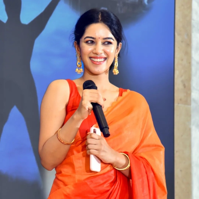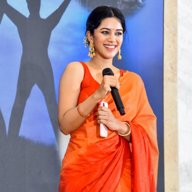 Actress Mirnalini Ravi has come a long way from her Dubsmash video days. The actor who used to be a performer on the platform climbed the stairs of success in a very short time. So she is often invited to many college fests owing to her mass popularity. For a similar function, the actress decided to wear an orange saree by Kiaraa Couture.