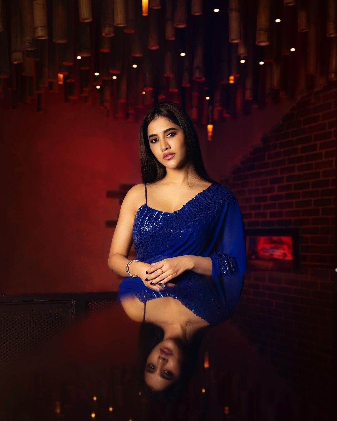 Actress Nabha Natesh has change into a sensation among the many public inside a brief time frame. The actress does each glamorous and character roles with the identical panache which makes her a power to be reckoned with. The beauty was noticed at a retailer opening final week trying completely beautiful. She opted for a navy blue saree by Sindhu Reddy designer home.