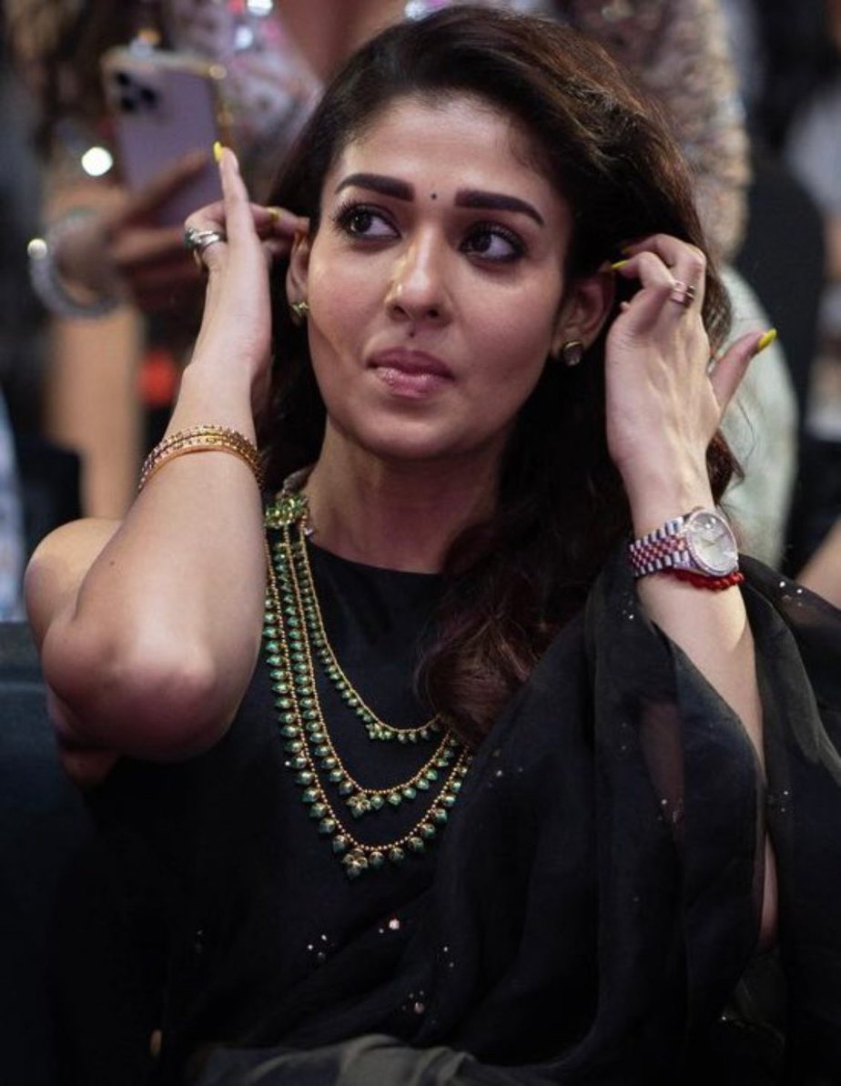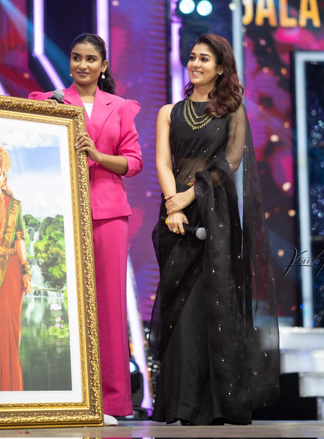 No program in Kollywood is complete without the lady superstar making a smashing entry. Actress Nayanathara has managed to garner a love for herself like none else. The actress who keeps away from social media was recently spotted with her beau Vignesh Shivan at the Galatta awards. The couple twinned in black with Nayan wearing a black saree.