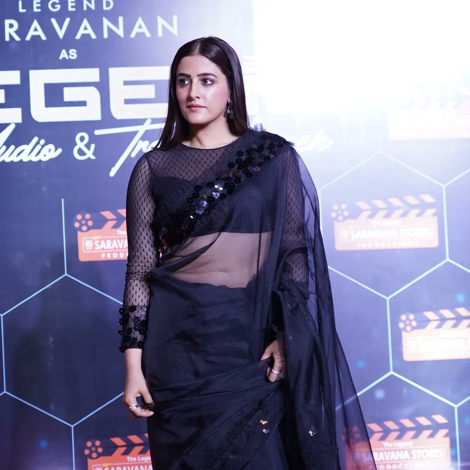 Actress Nupur Sanon is all set to make her debut in the South industry with Ravi Teja. There’s already a lot of buzz around the film and the beauty as well. In fact, the actress was spotted at the trailer launch of “Legend” last day with some of the hit actresses. For the occasion, Nupur wore a black chiffon saree by Neeta Lulla. This is from the designer’s Mehr collections.