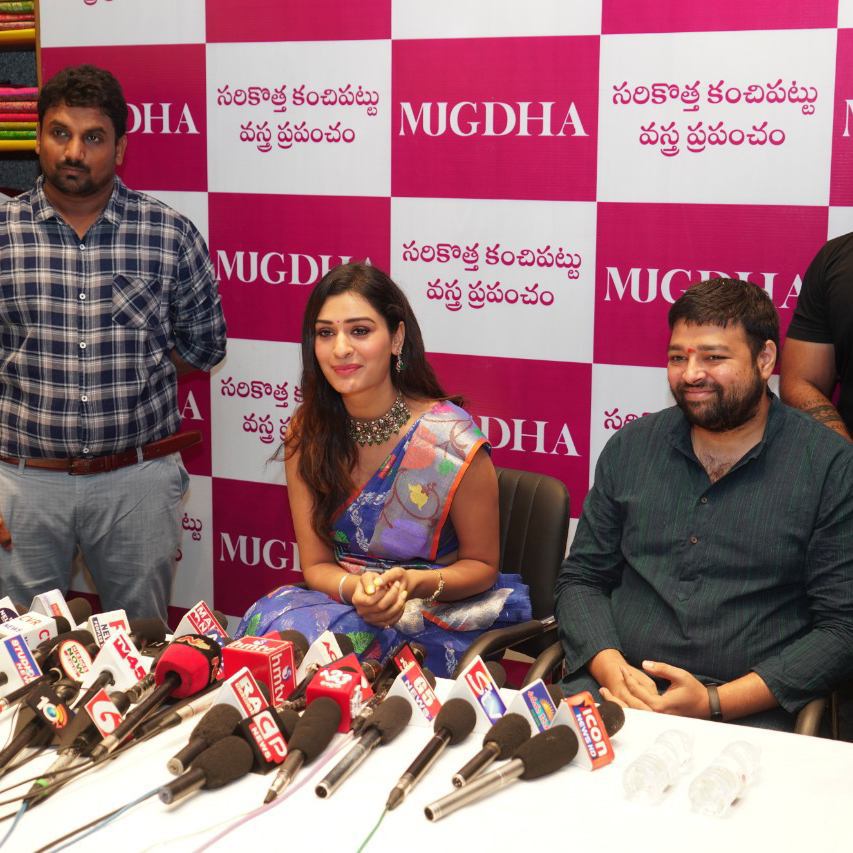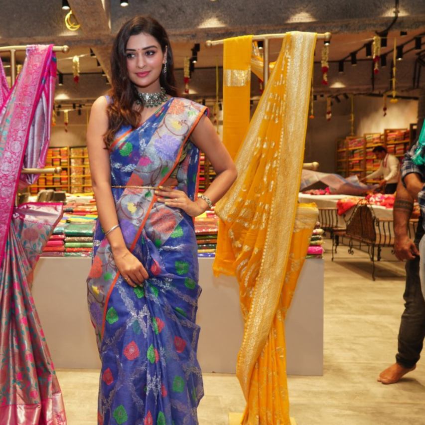 Actress Payal Rajput inaugurated the Nellore store of Mugdha Art Studio last day. She has always been a part of their inaugural functions and decided to grace this one as well. For the occasion, she wore a blue silk saree from the brand’s shelves. Unlike the usual ones, this one rests upon minimalistic patterns and hues.