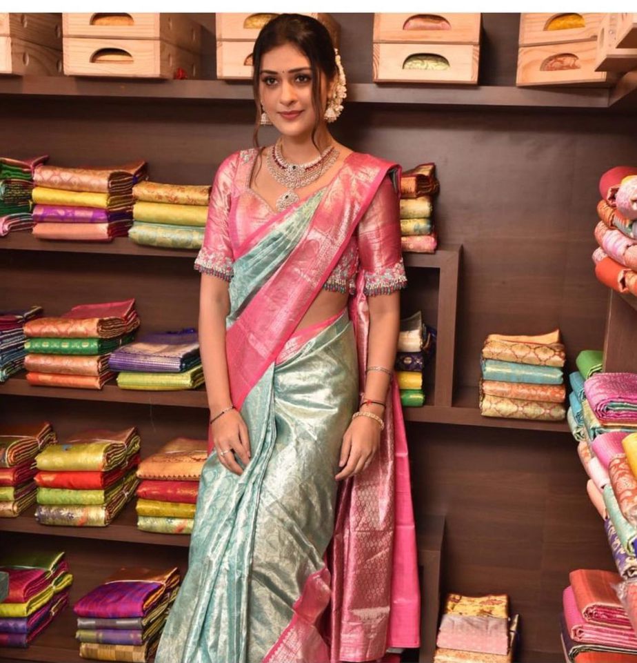 Actress Payal Rajput is all the time identified for her ultra-modern and sultry appears to be like on the display and off-screen. Nonetheless, proving that she will look as stunning in an ethnic look as properly, Payal wore a saree. The sky blue saree that Payal wore to a store opening was from Vedic Weaves. For light-hued pattu saree lovers, we expect there’s no more sensible choice than this one!