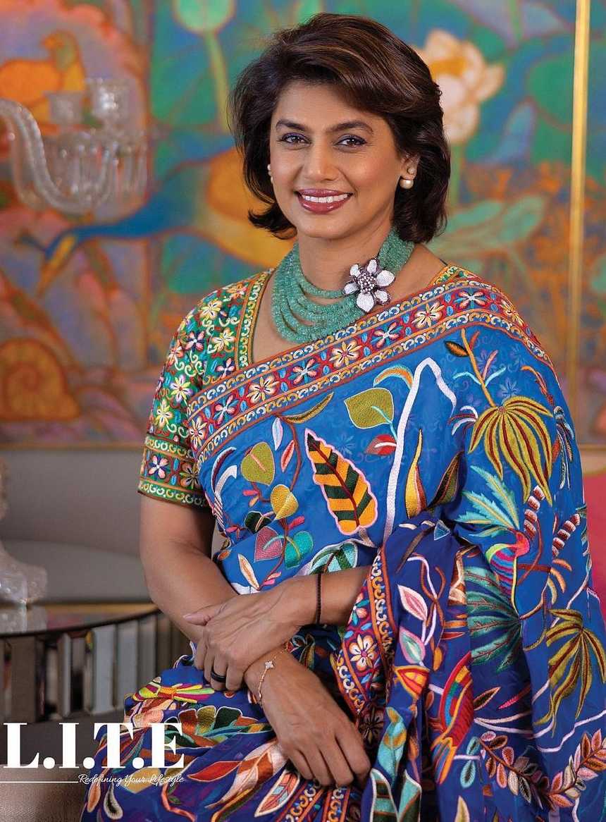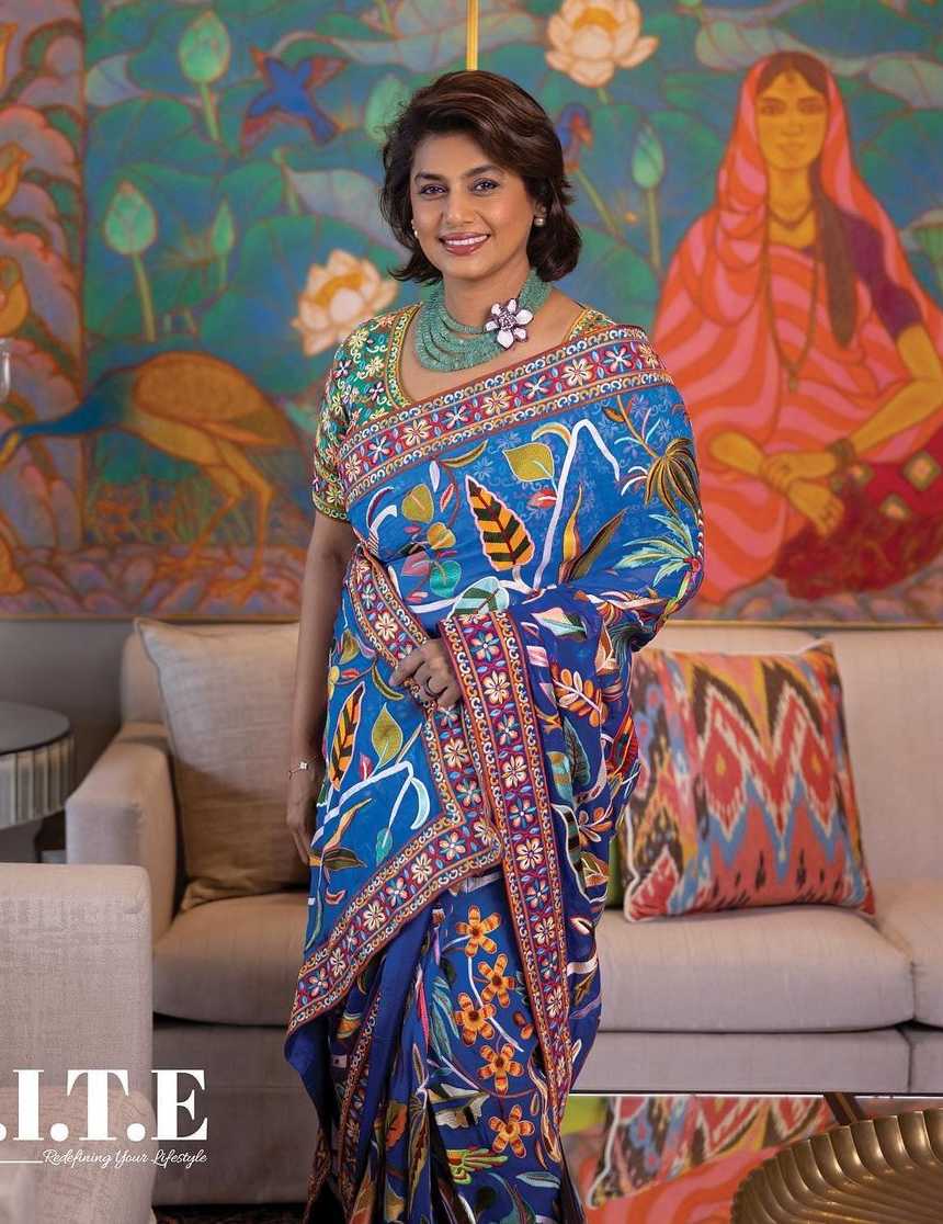 Industrialist Pinky Reddy is one of the most famous women socialites in the country. She has managed to carve a niche for herself for over a decade and is certainly an inspirational female figure. Recently she was invited by “Flite” magazine to be on the cover picture. She was seen posing in a blue saree by Abu Jani Sandeep Khosla.