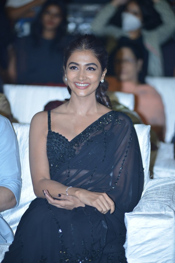 Actress Pooja Hegde and Akhil Akkineni’s “Most Eligible Bachelor” has taken over the audiences as expected. The music, the lines and dance routines are already a hit on social media. To celebrate their grand success, the cast and crew organized a success party for the movie with Allu Arjun as chief guest. For the event, Pooja looked pretty as always in a black saree.
