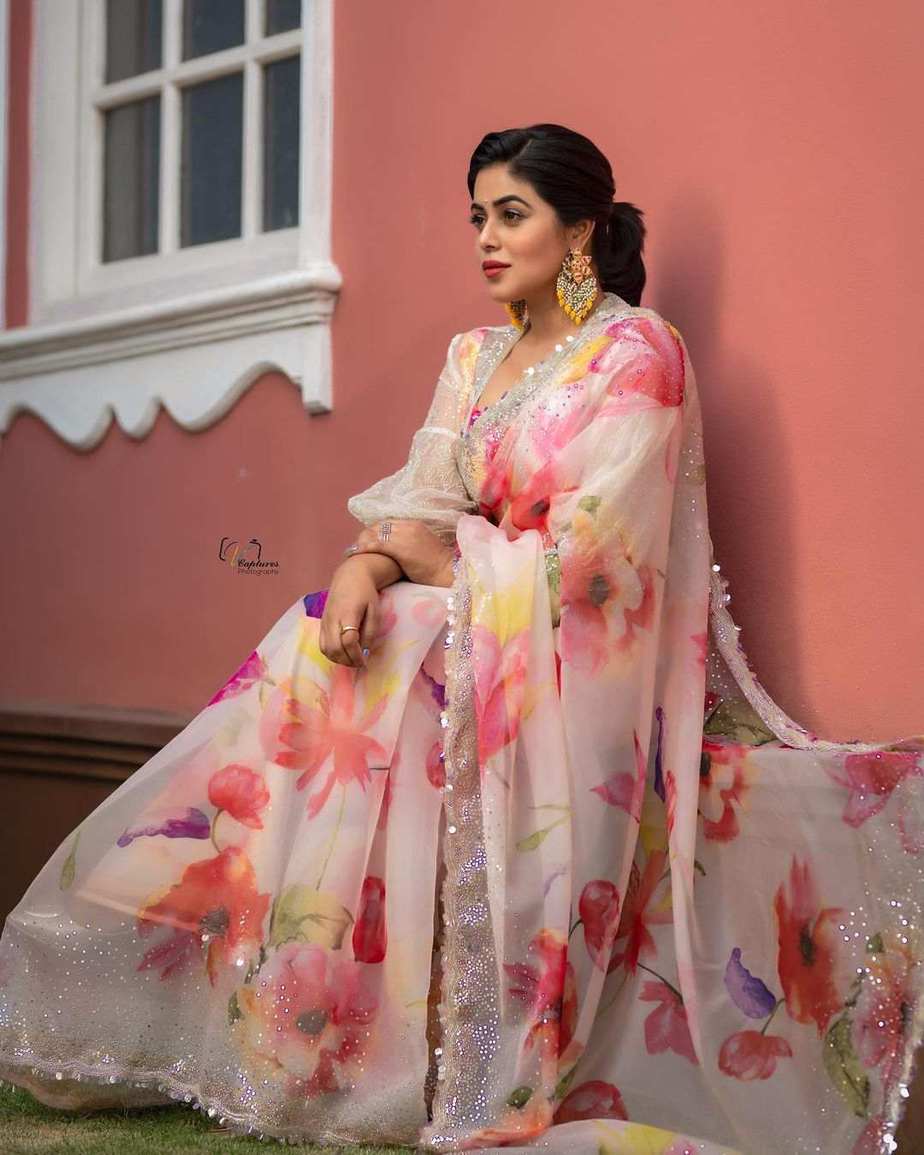 While parties have not yet become so common in the country, there’s no harm in wearing party wear says actress Poorna. The beauty was seen dressed up in a floral saree from Brand Mandir for the latest episode of “Dhee Kings”.