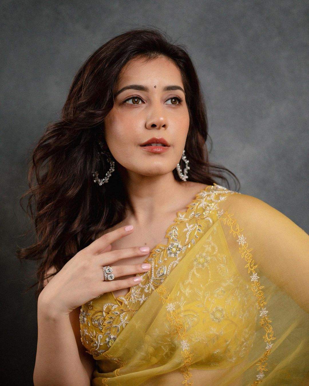 The colour yellow is one of the most popular ones. It is not just the colour of light but also is very auspicious to be worn whatever the occasion might be. While we are sure each of you might have a yellow number in your closet, we are sure you will lose your heart to this one worn by Raashii Khanna. It is from Megha Bansal’s festive collection.