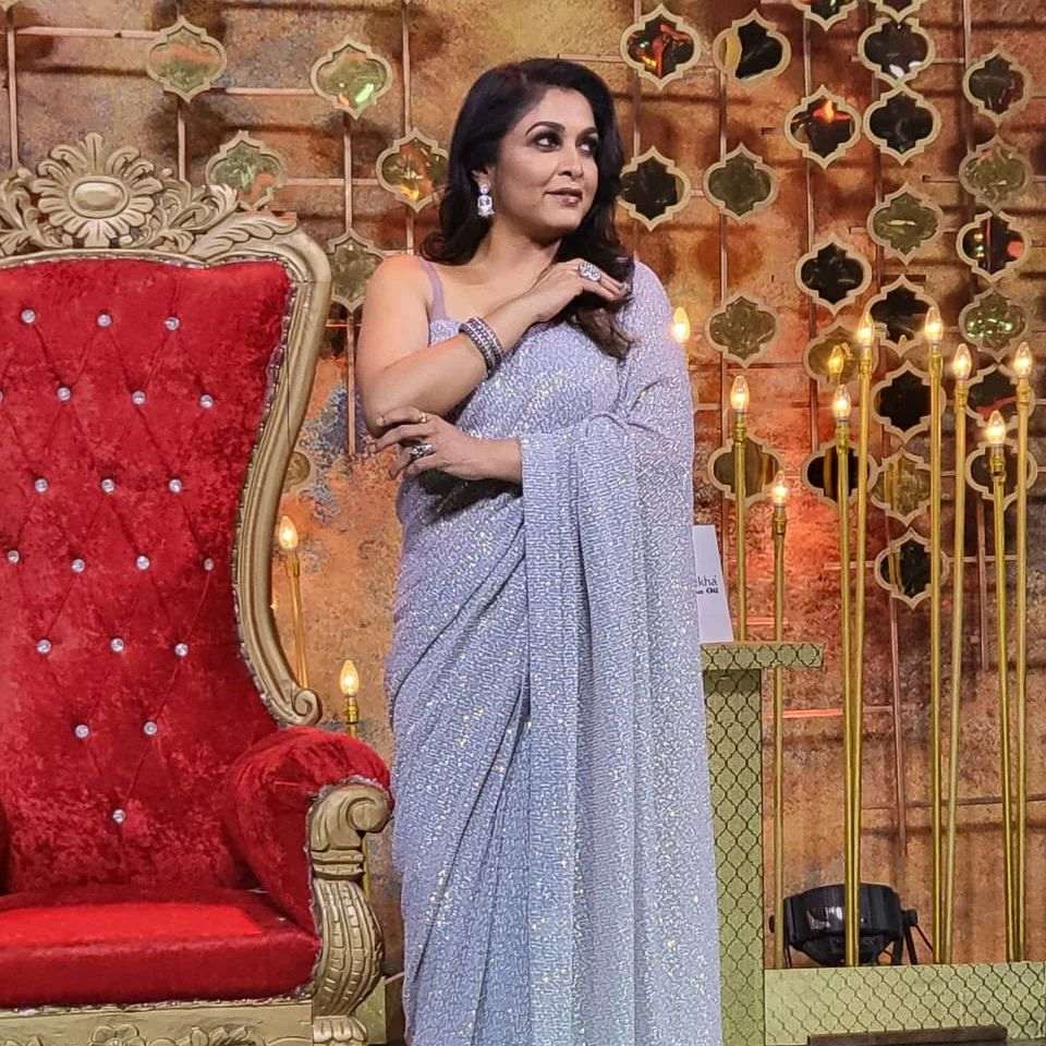 Ramya Krishnan is an epitome of grace in a silver saree for “BB Jodigal!” Celebrity Sarees