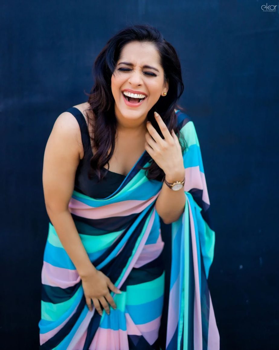 Panelled sarees have always been in vogue and are not going out of style anytime soon. Therefore it is seen everywhere we go and our celebrities seem to be their greatest fans. While there are a number of panelled drapes, the multicoloured one seems most interesting. If you don’t believe us, this saree worn by Rashmi Gautam in blue will certainly prove our case. The saree is designed by Starry Dreams.