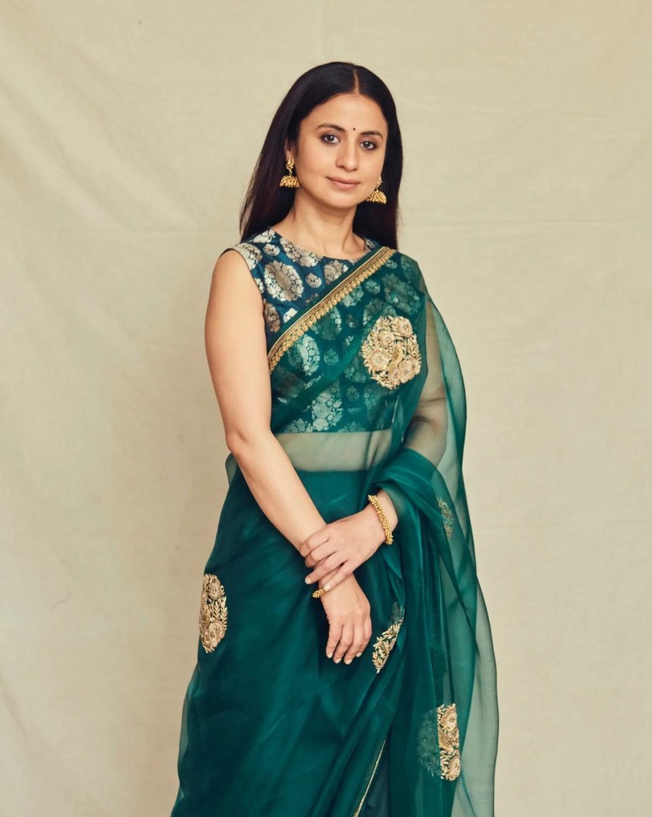 Rasika Dugal is a pretty wedding guest in a green organza saree! Celebrity Sarees