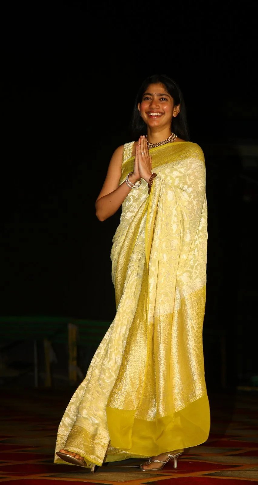 1. In a yellow Benarsi saree for the trailer launch-