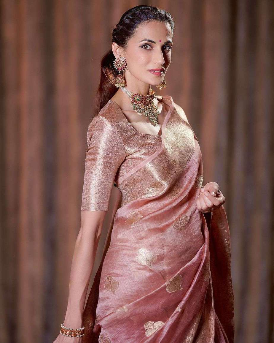 Designer and model Shilpa Reddy is a gift that keeps on giving. The beauty drapes on beautiful sarees and keeps us giving so wonderful sartorial choices that we can only dream of otherwise. For a dance event that she had to attend recently, she wore a blush pink saree gifted by her mother.