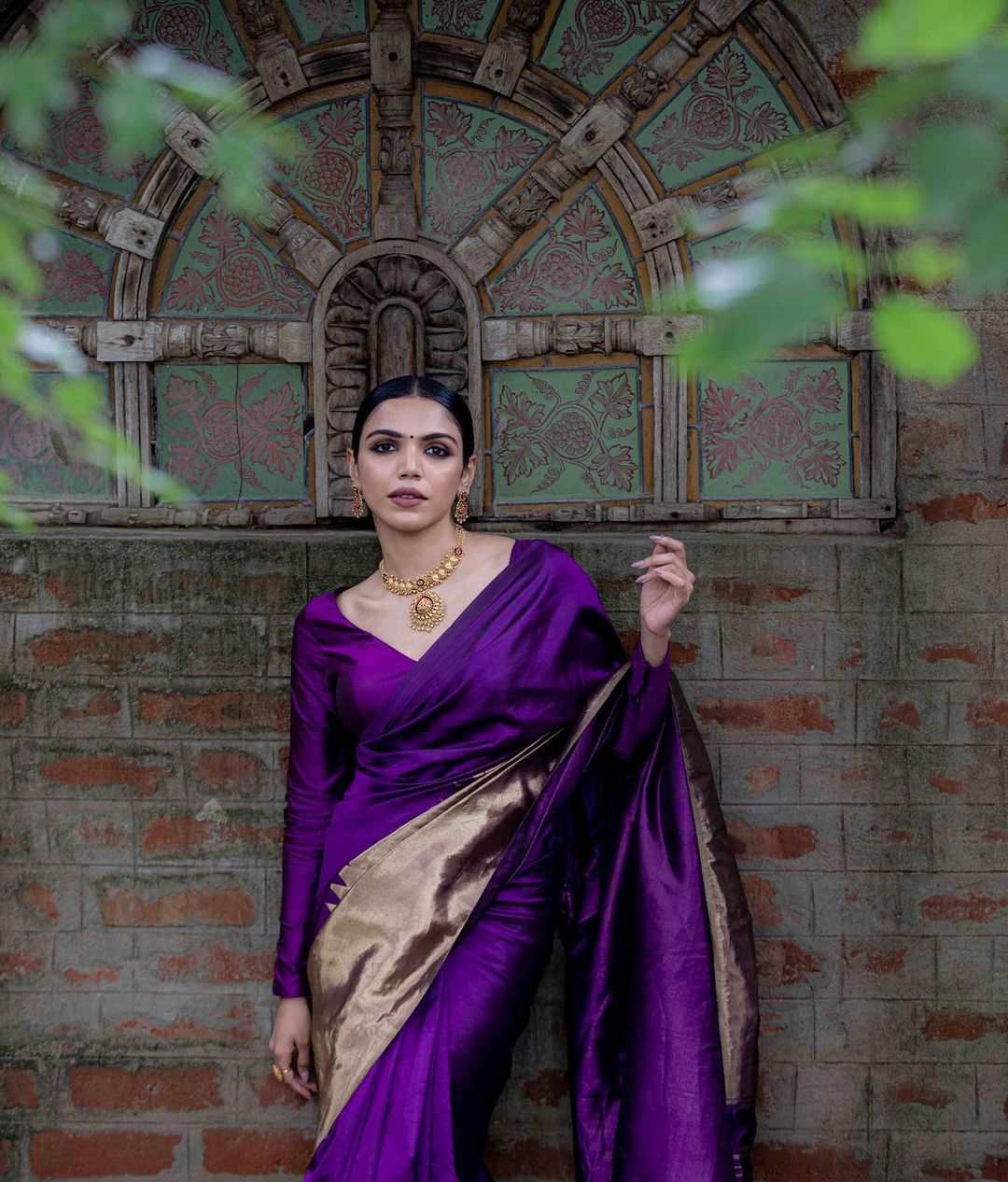She styled the traditional look with a set of antique gold earrings, a neckpiece and a ring by Tanishq. A low-tied bun with blushed cheeks, a bindi, kohl-rimmed eyes and nude lips completed the look.