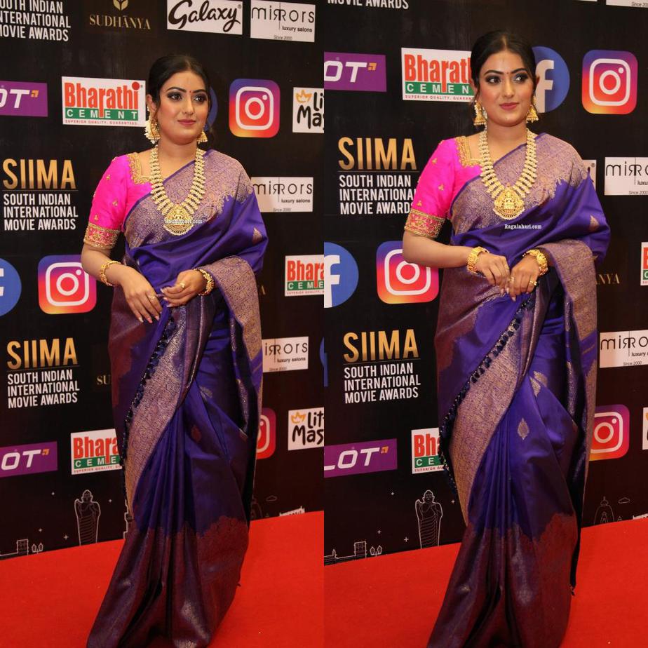 Sonika Gowda in a violet pattu saree at SIIMA 2021-2