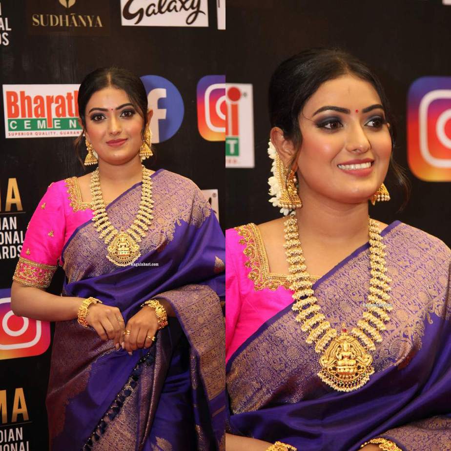 Sonika Gowda glows in a violet pattu saree at SIIMA 2021! Celebrity Sarees